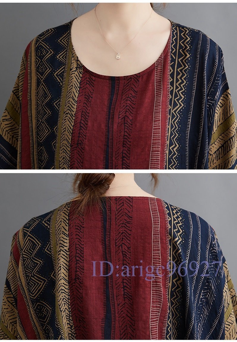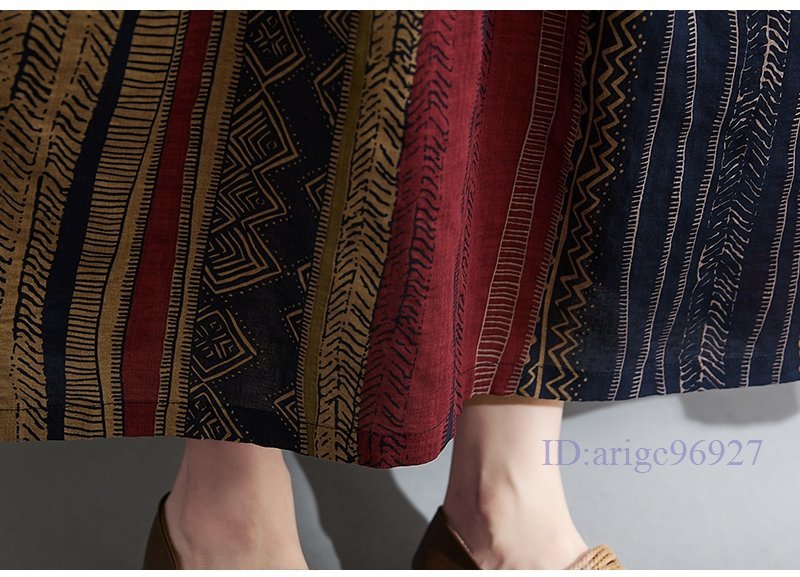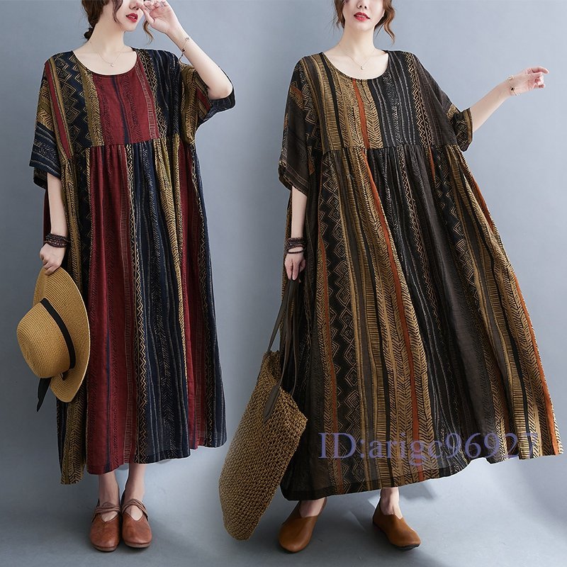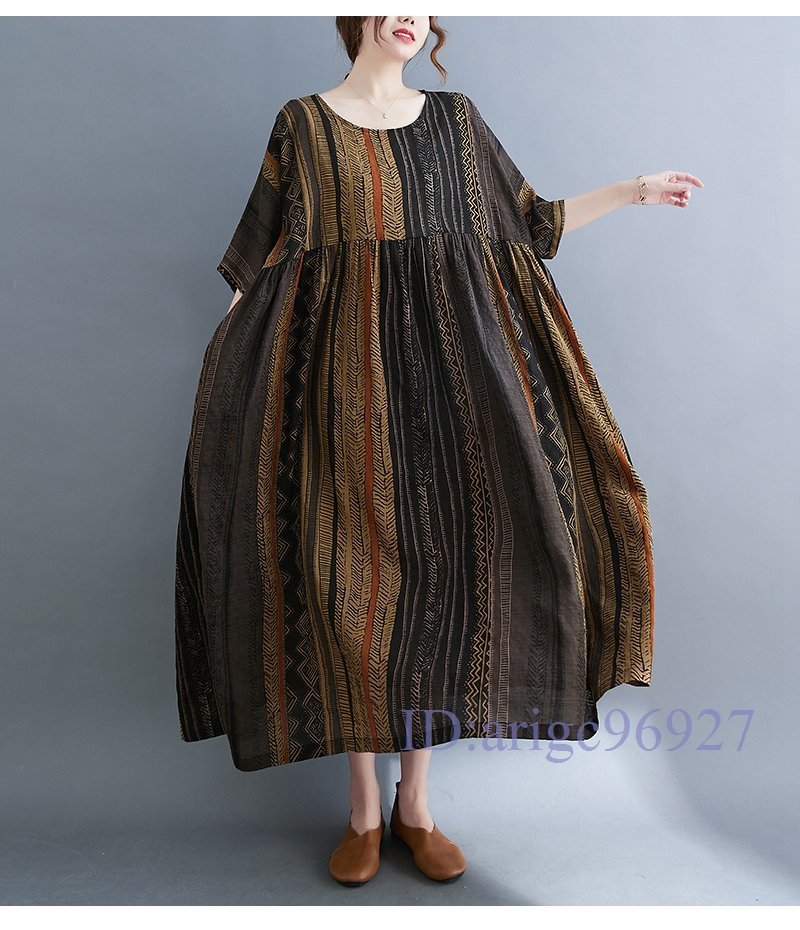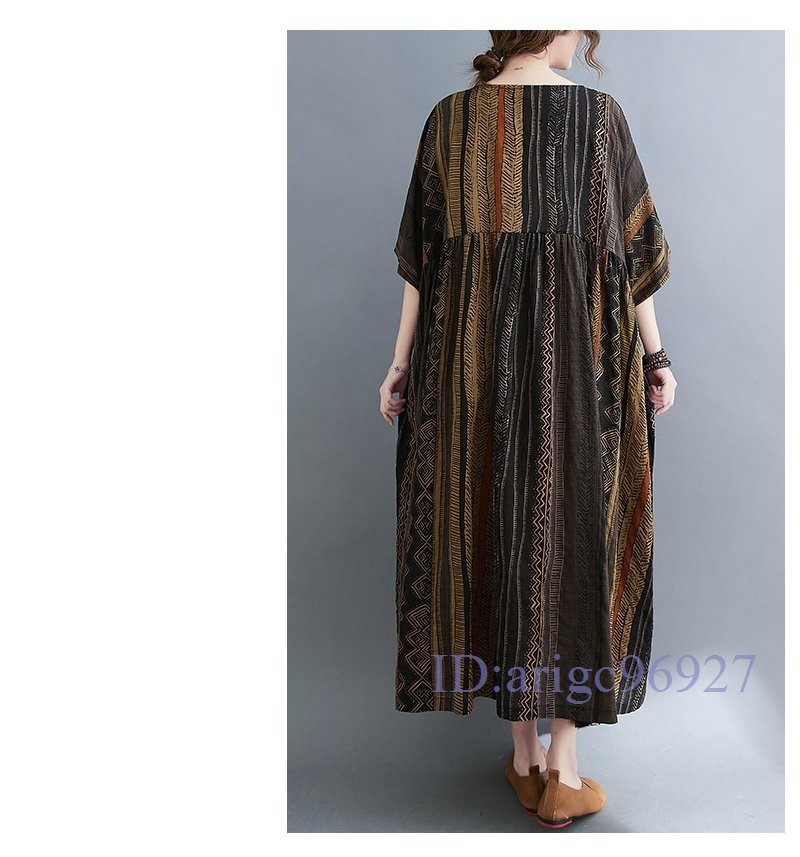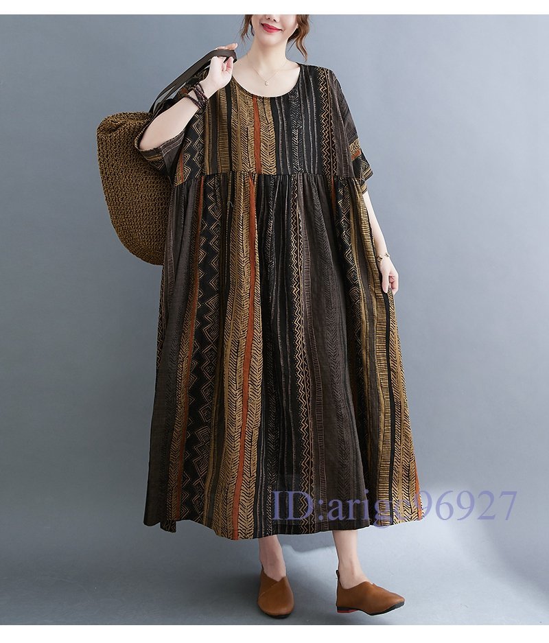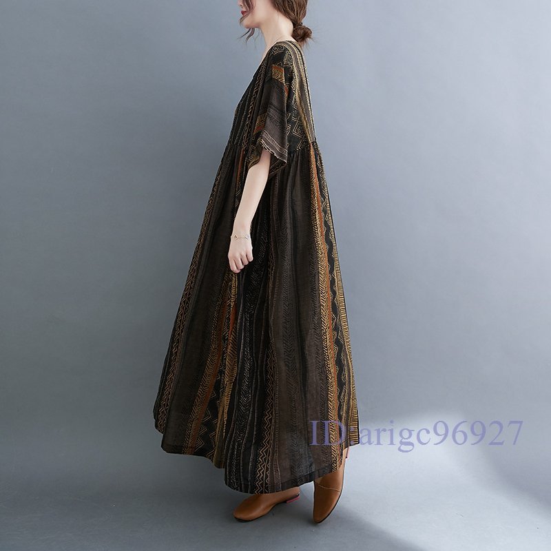 S093☆新品エスニック柄がとってもおしゃれ 大きいサイズ☆コットン風素材のふわっと軽いロング丈ワンピ 黄系