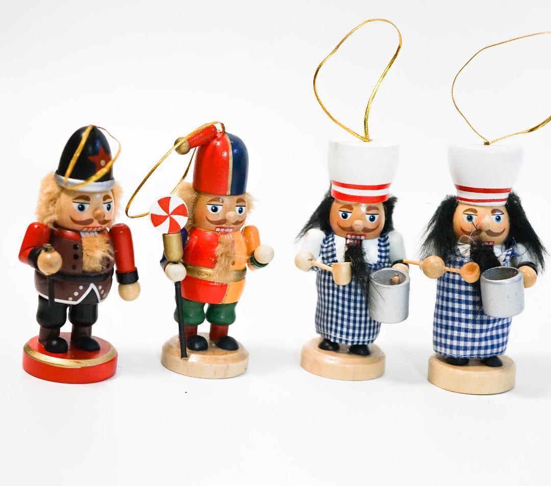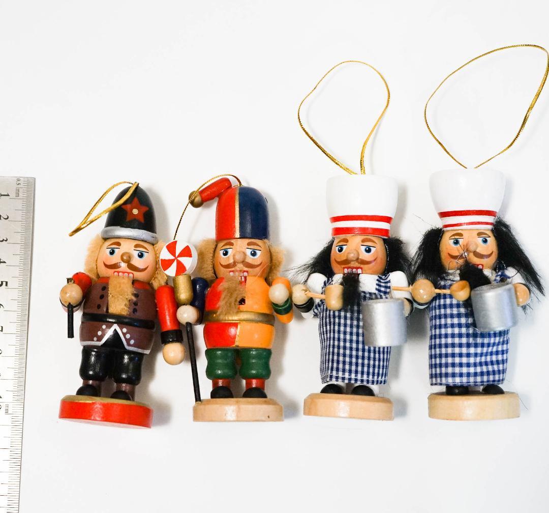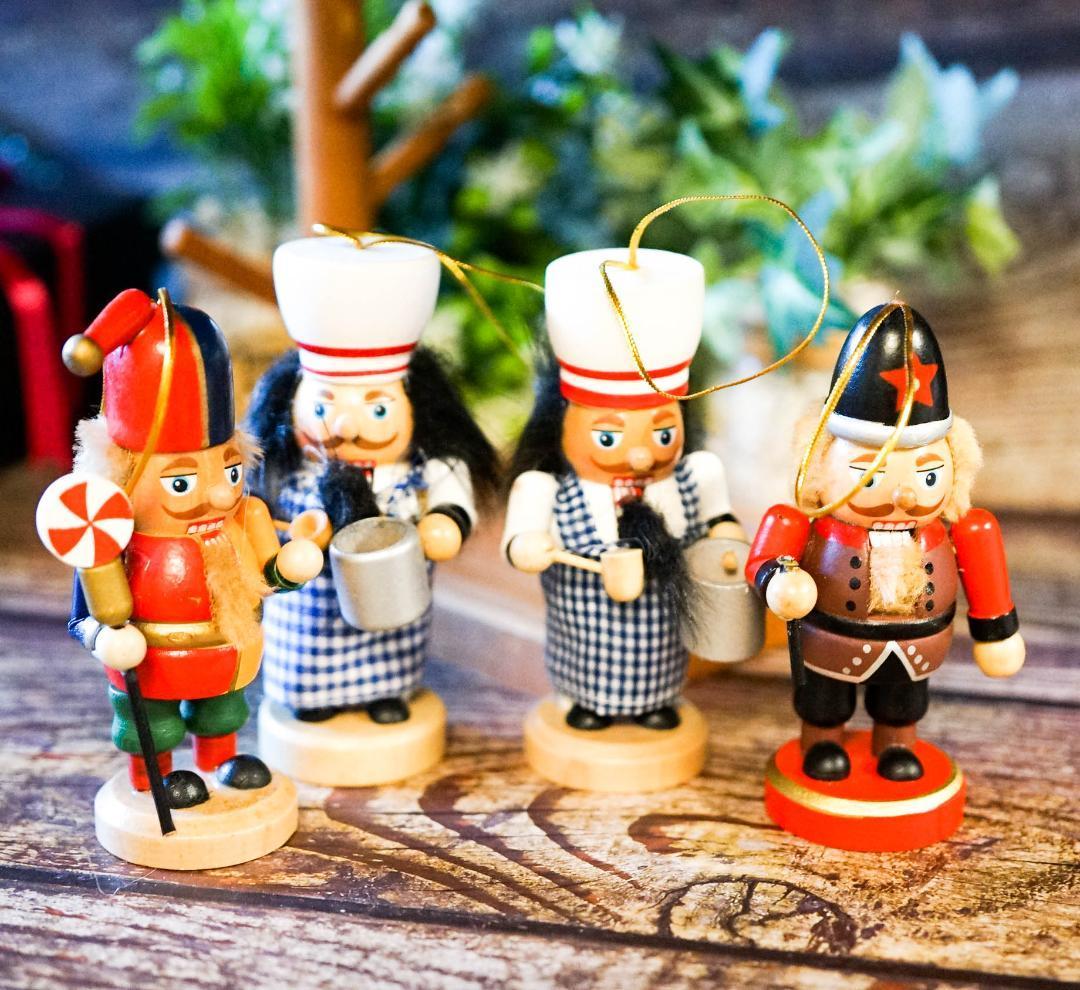 くるみ割り人形 小型 小さい 4体セット 杖車鍋鍋 木製 クルミ割り人形【現物撮影】