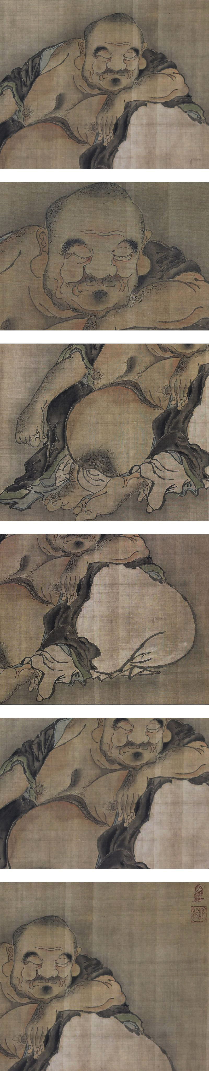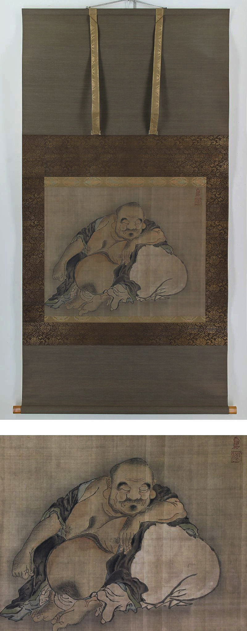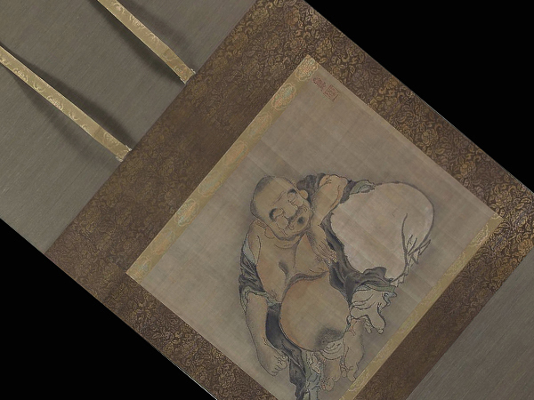 | №120240【肉筆】古画【布袋図】◆絹本◆合箱◆掛軸 | |