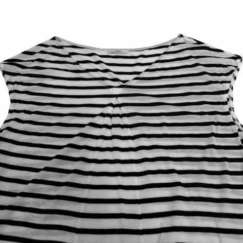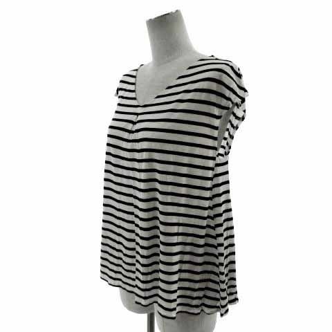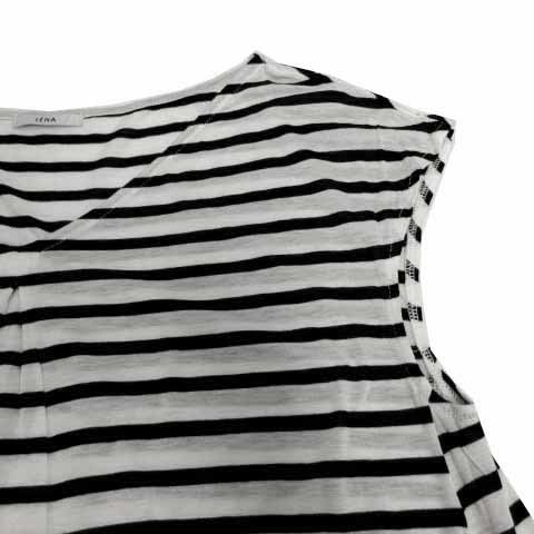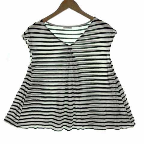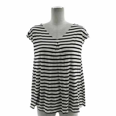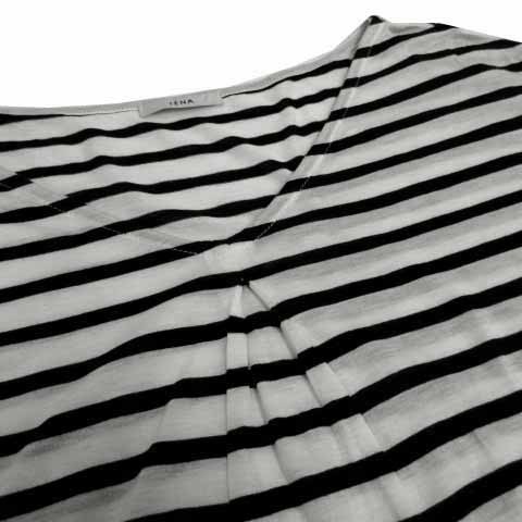 イエナ IENA カットソー Vネック フレンチスリーブ タック 薄手 日本製 コットン混 ボーダー ホワイト 白 ブラック 黒 レディース