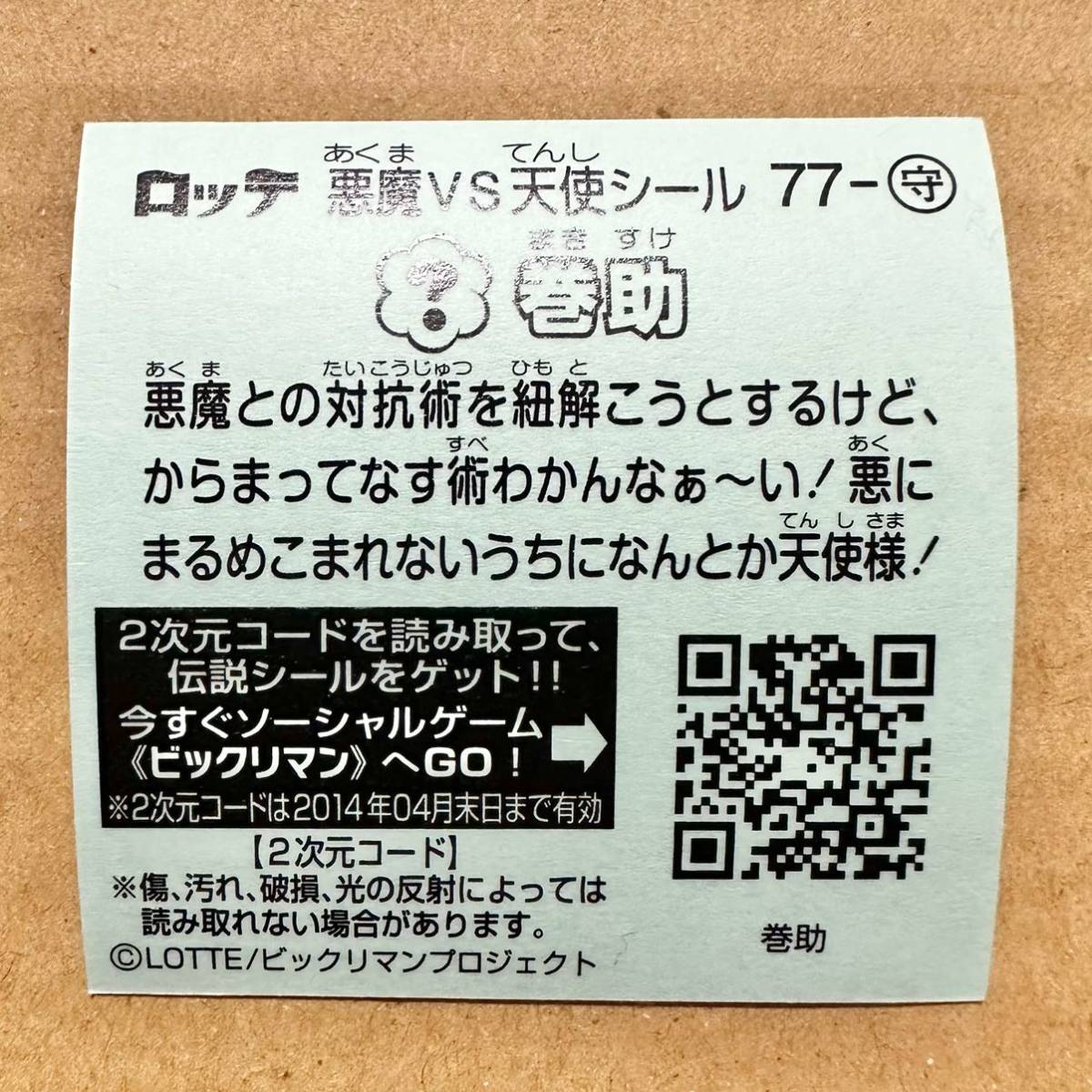 巻助 ビックリマン伝説 第5弾 悪魔VS天使シール ロッテ ビックリマン 伝説5 77 守 お守り ビックリマンプロジェクト