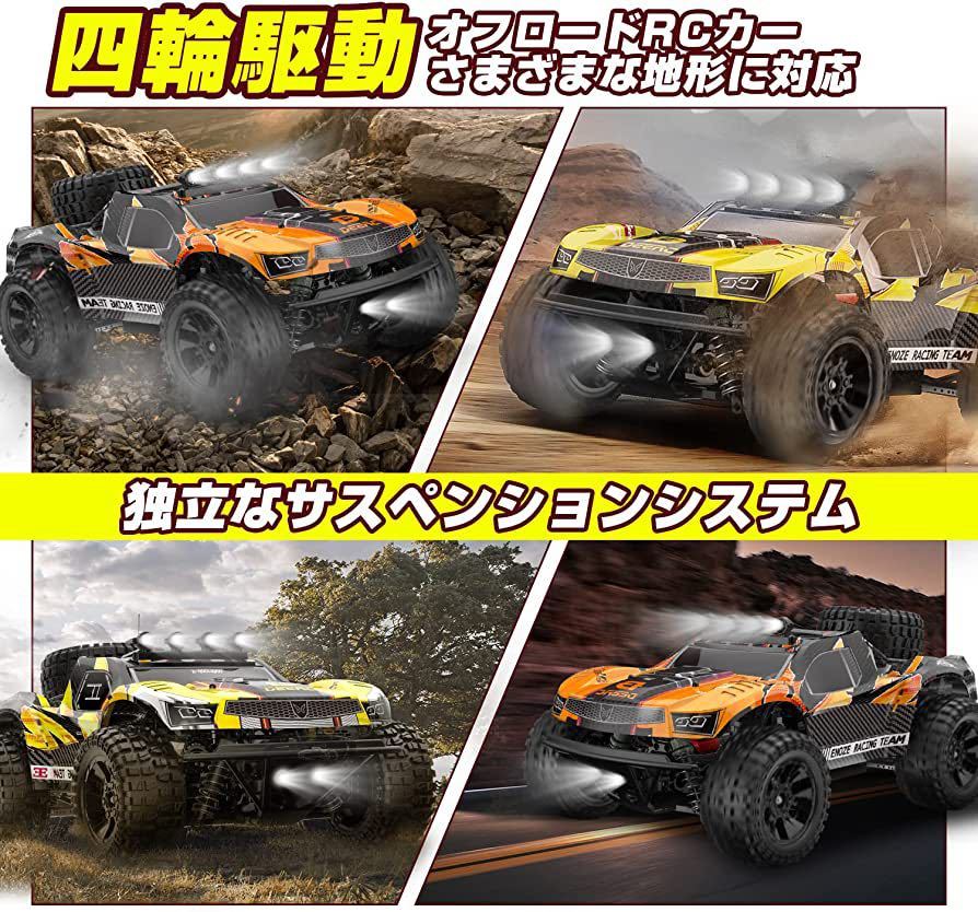 【1500大容量バッテリー&二つカーシェル】7.4V充電バッテリー2個付き、付属されたUSB充電ケーブルを使い、モバイルバッテリーからの給電が可能です。フル充電の状態で約40分(各バッテリー20分)の使用ができ、十分の楽しさを提供できます。赤色と黄色という二つシェルを付き、カーボディを自分好みにカスタマイズして、自分だけのオフロード車を作られる。