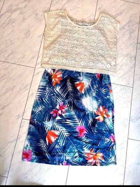 ハワイ風の華やかなリゾート柄、シャラッとした着やすいワンピースです♪