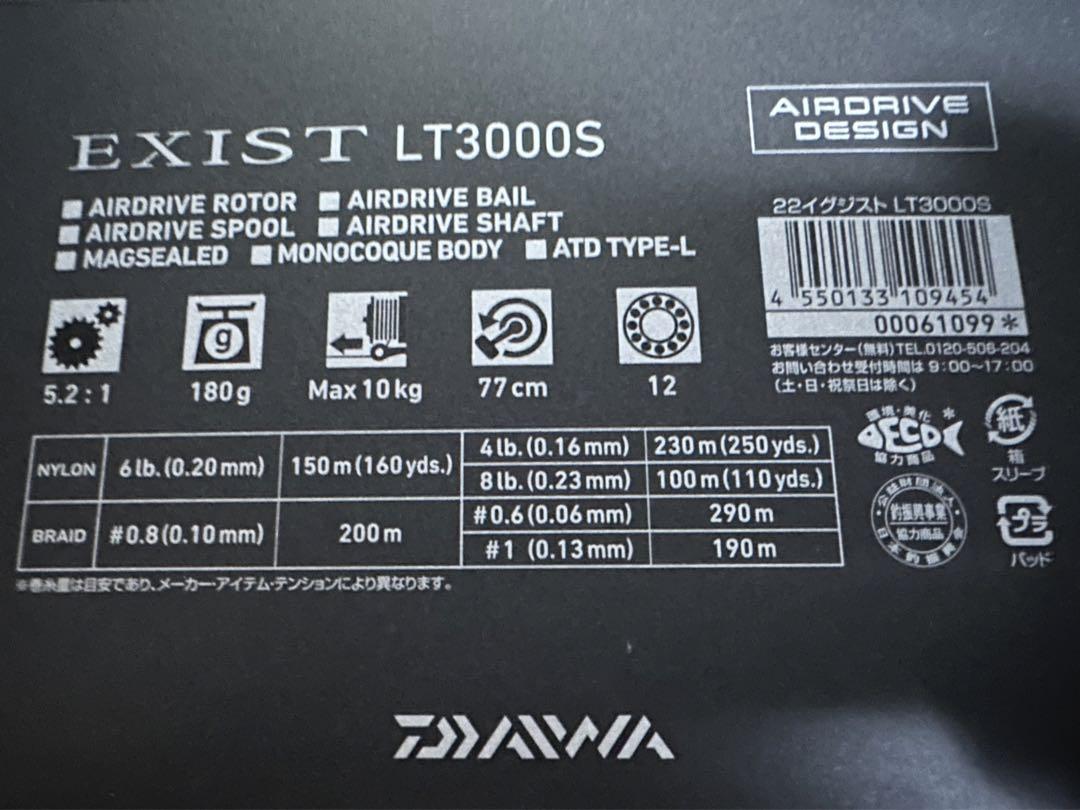 新品 22イグジスト(EXIST) ダイワ(DAIWA) 【LT3000S】 スピニングリール 釣り具 フィッシング 海釣り 左右交換ハンドル シルバー