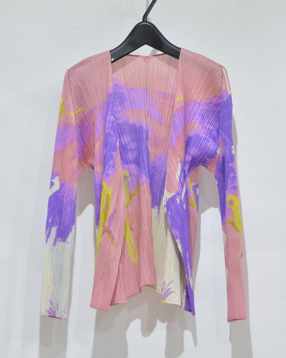 PLEATS PLEASE プリーツプリーズ ISSEY MIYAKE イッセイミヤケ 鳥 オウム バード柄 カーディガン PP91-JH873 Y-28784B