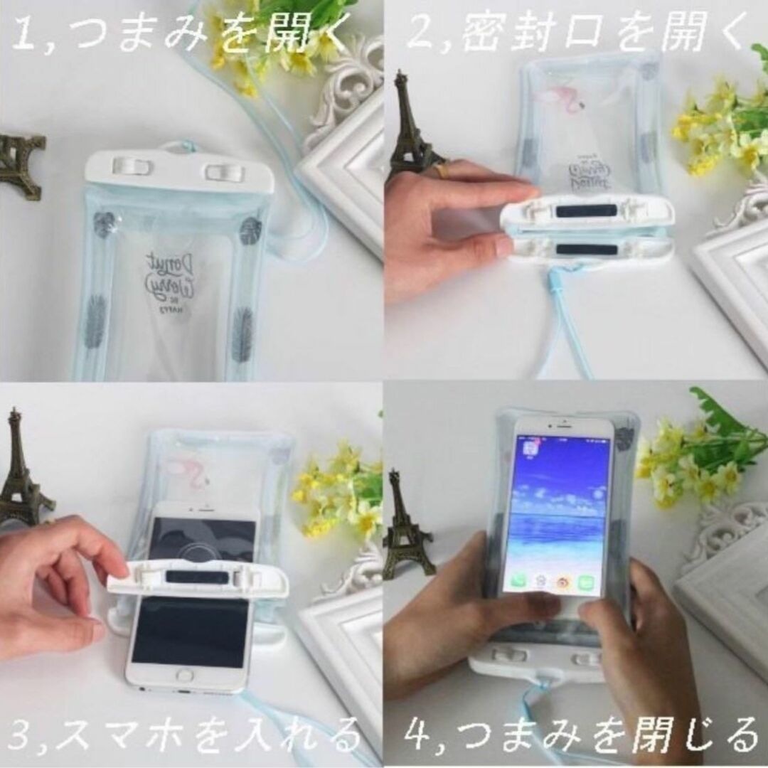※ご使用の前に必ず携帯の代わりにティッシュペーパーをケースに入れて、防水ケースを水に沈める30分間の防水試験を行ってください。