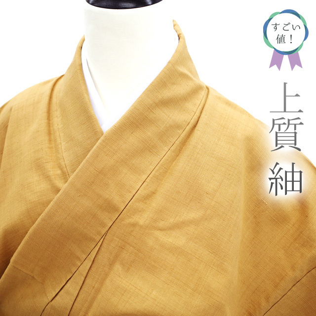 【中古】 すごい値! 紬 リサイクル 袷 着物 袷 正絹 薄茶色 無地 カジュアル 仕立て上がり 身丈158 裄65 Mサイズ 春 秋 冬 リサイクル着物 中古 お食事 観劇 コンサート お出かけ ショッピング など 販売 購入 綺麗 美品 リユース すごいね みやがわ nek00654