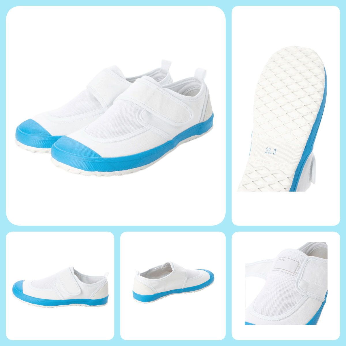 ベルクロ (マジックテープ) タイプのメッシュ上履き。