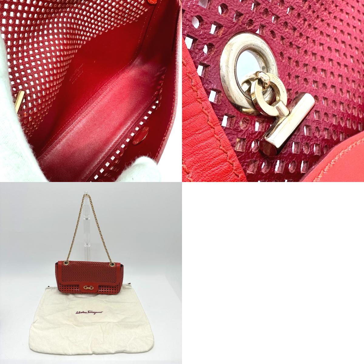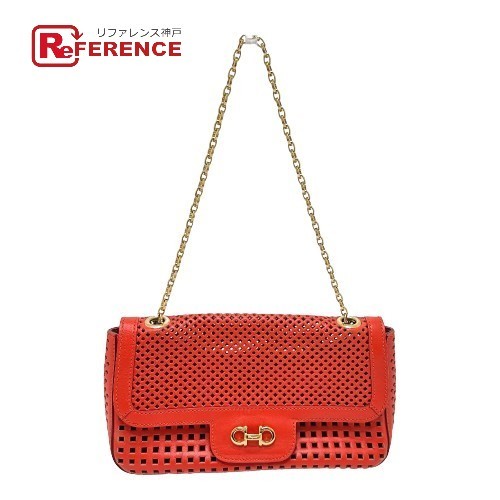 Salvatore Ferragamo サルヴァトーレフェラガモ ガンチーニ パンチング カバン チェーン ショルダーバッグ レザー レディース【中古】