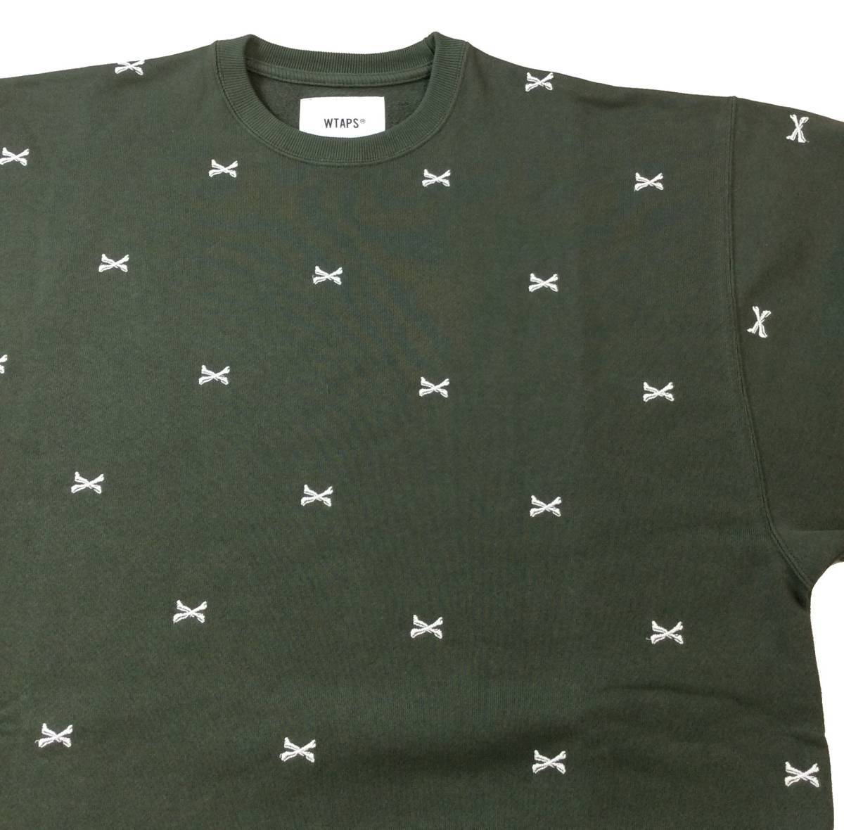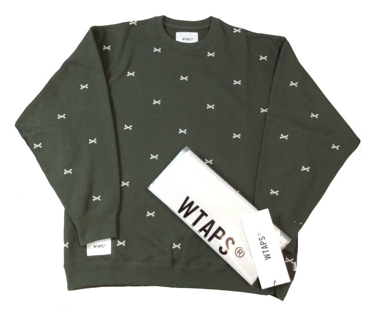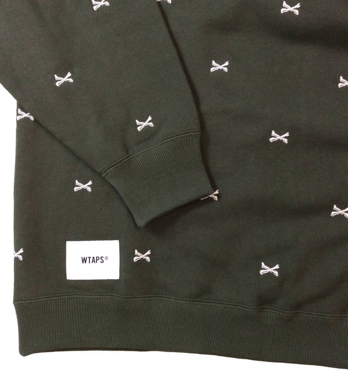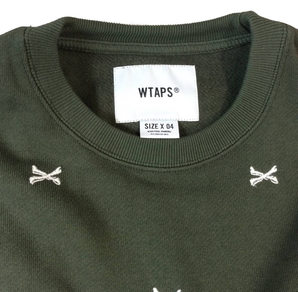 未使用 WTAPS ダブルタップス ACNE SWEATER CTPL TEXTILE ダブルタップス クロスボーン 刺繍 スウェット トレーナー オリーブ X 04