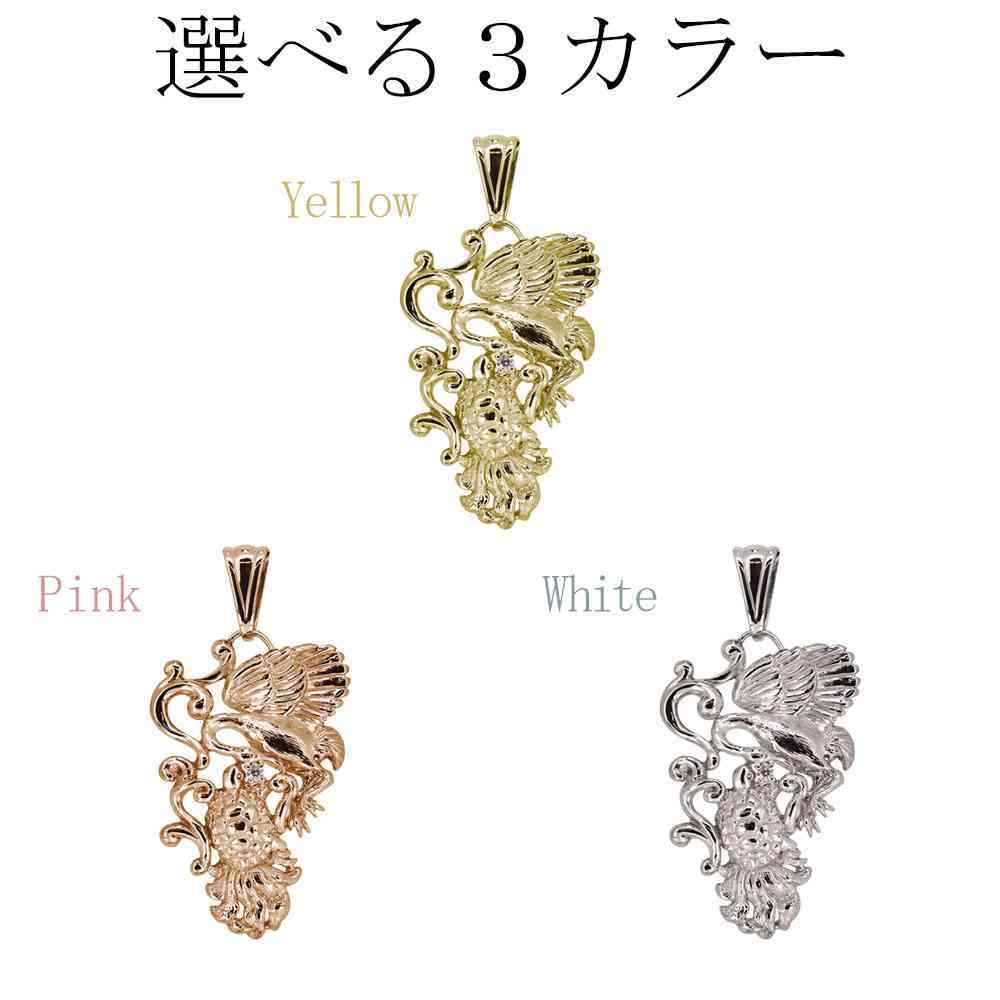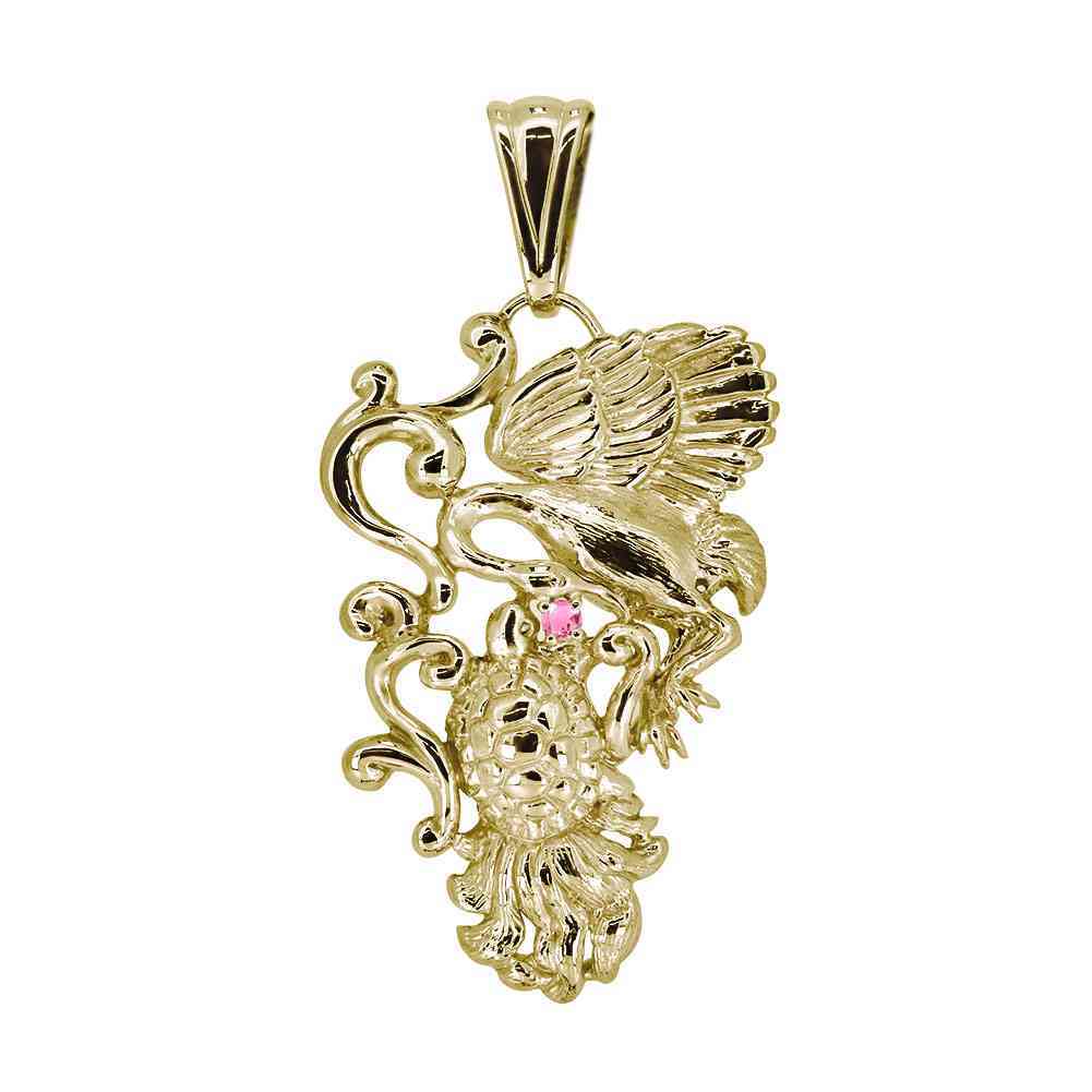 10月誕生石ピンクトルマリンを使用した10金製の、鶴と亀モチーフのメンズペンダントヘッドです。