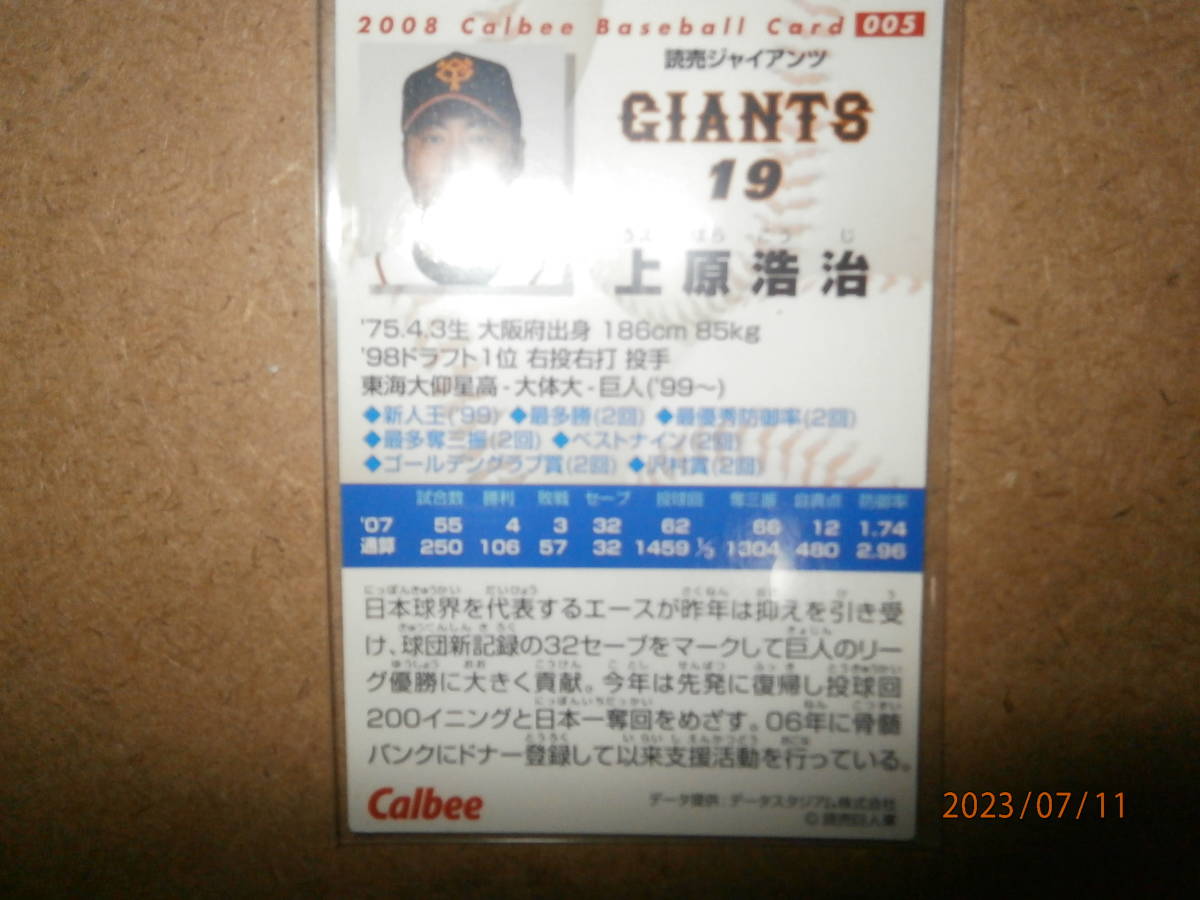 カルビー の プロ野球カード 上原浩治選手 の 中古カードになります。