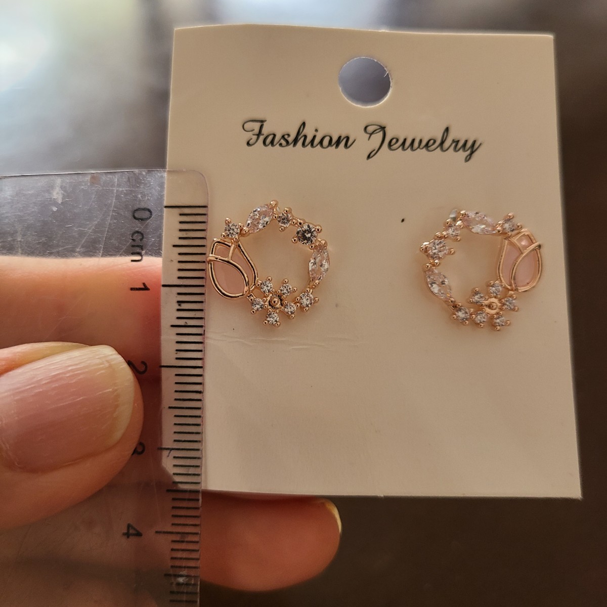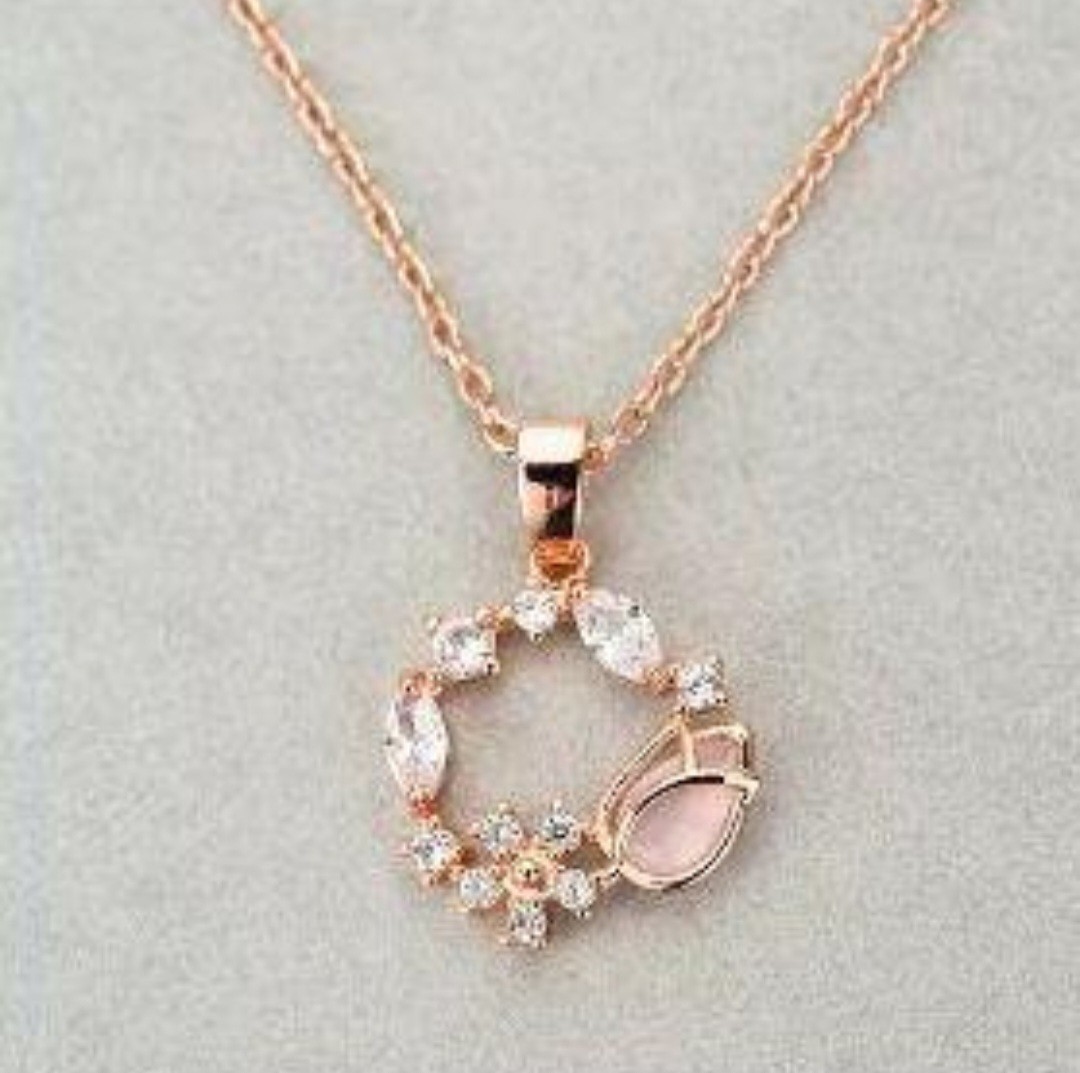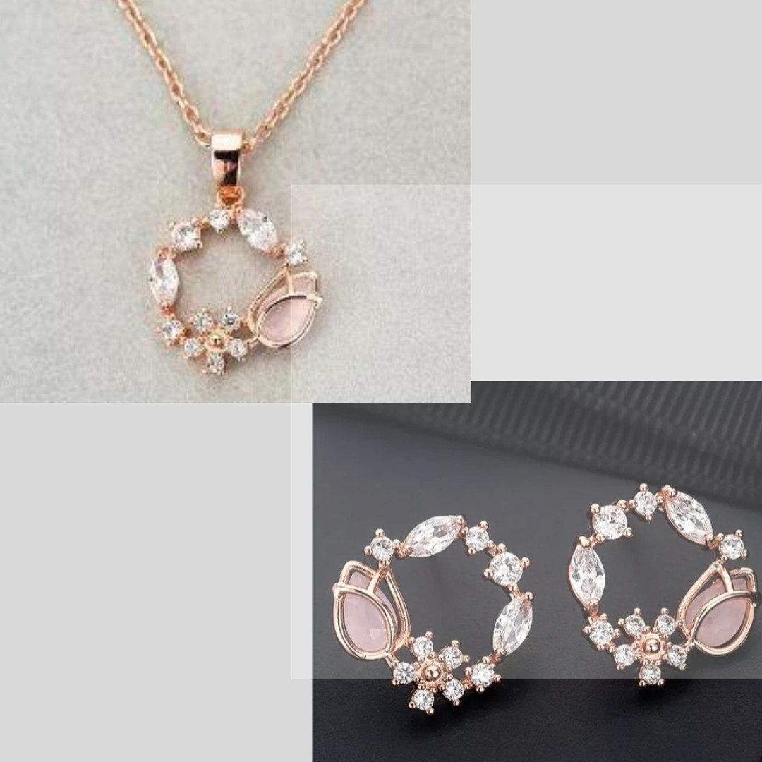 ピンクゴールドのシンプルなネックレスとピアスセットです