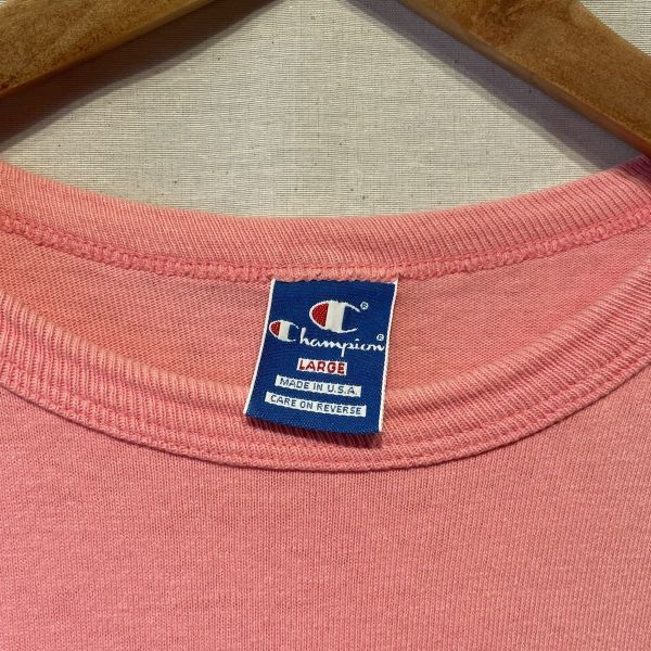 淡いピンクカラーで厚手の綿100ボディ、袖シングルステッチになります。