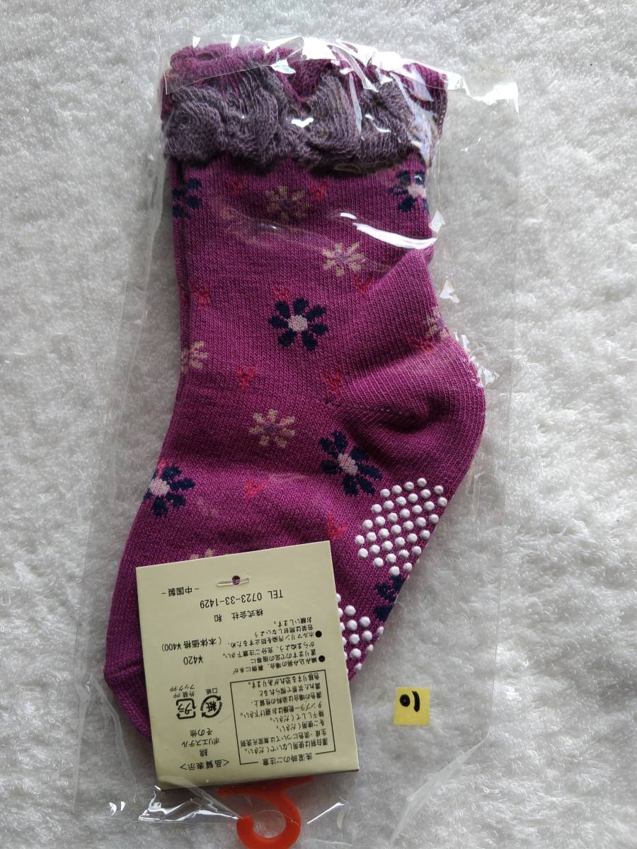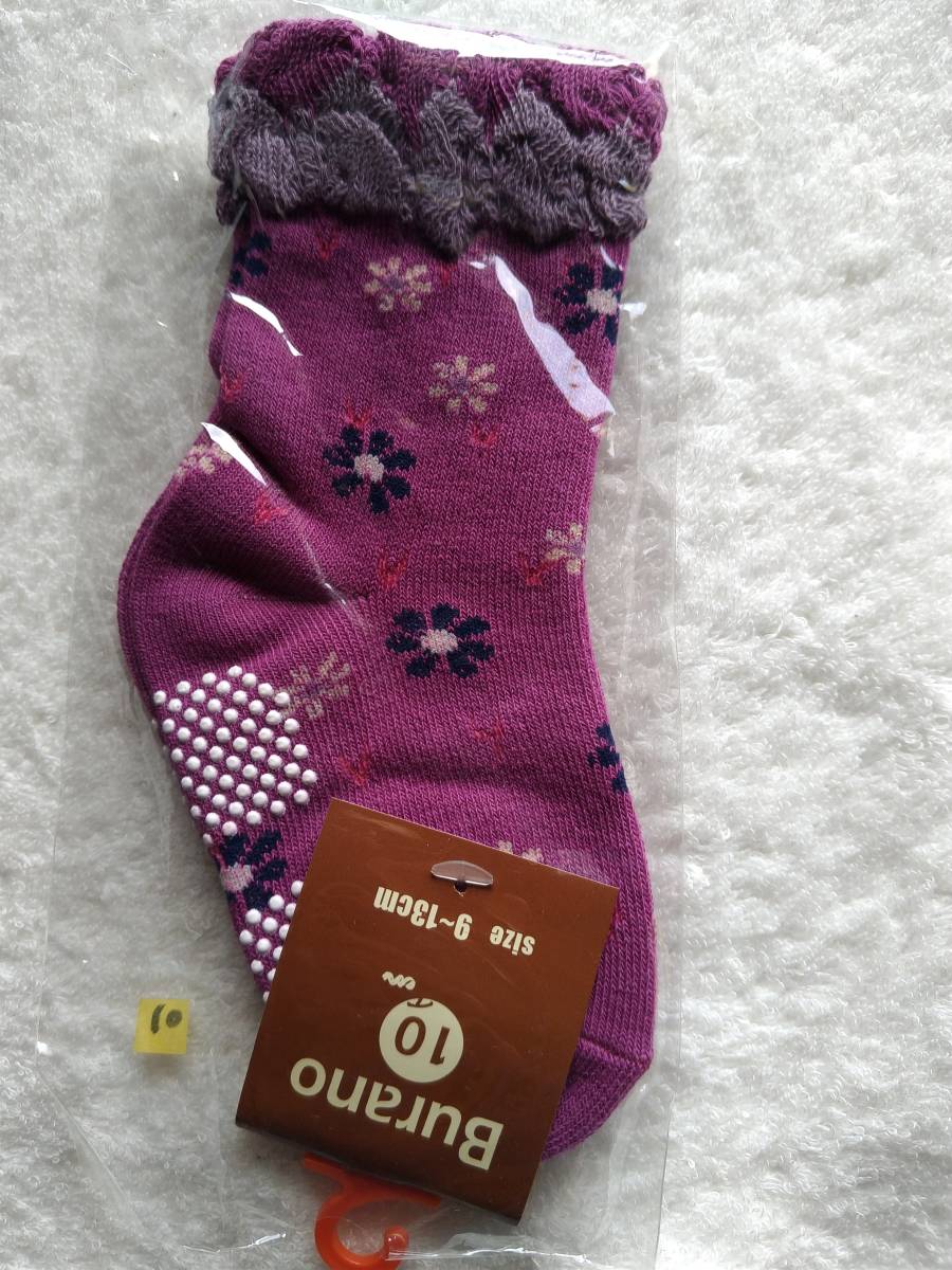 新品 ☆Burano☆ 9~13cm 靴下 花柄 紫色 @KB4110