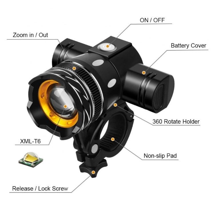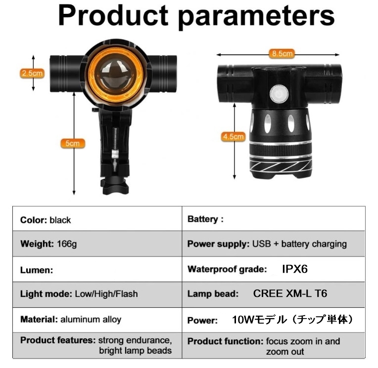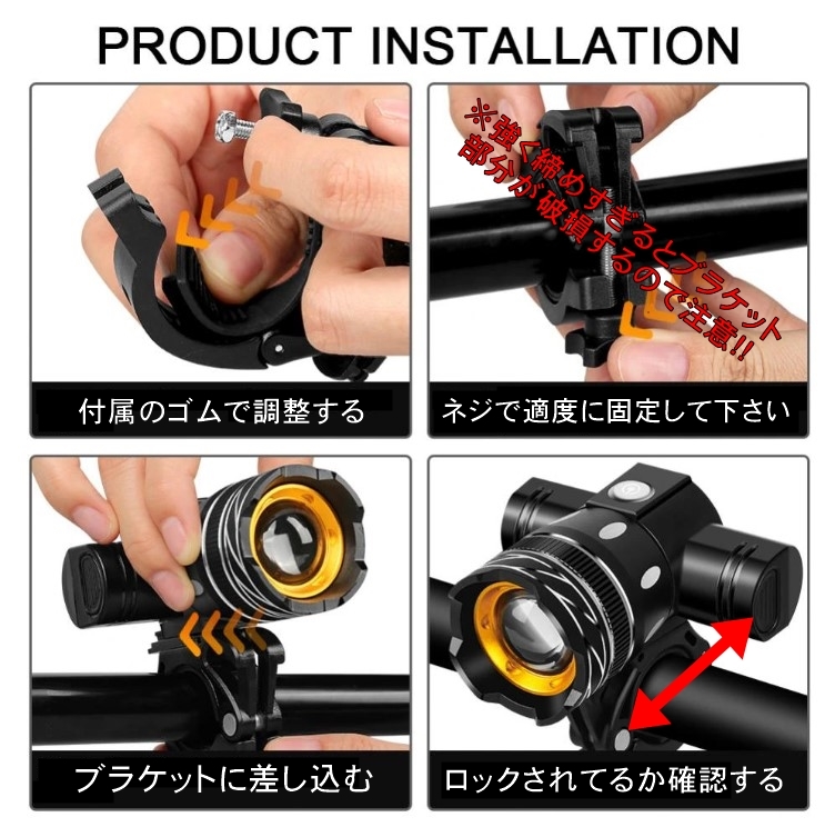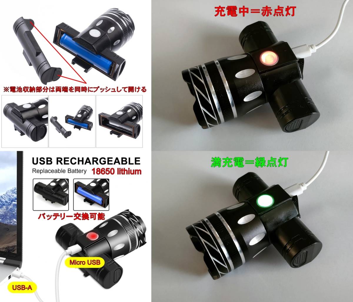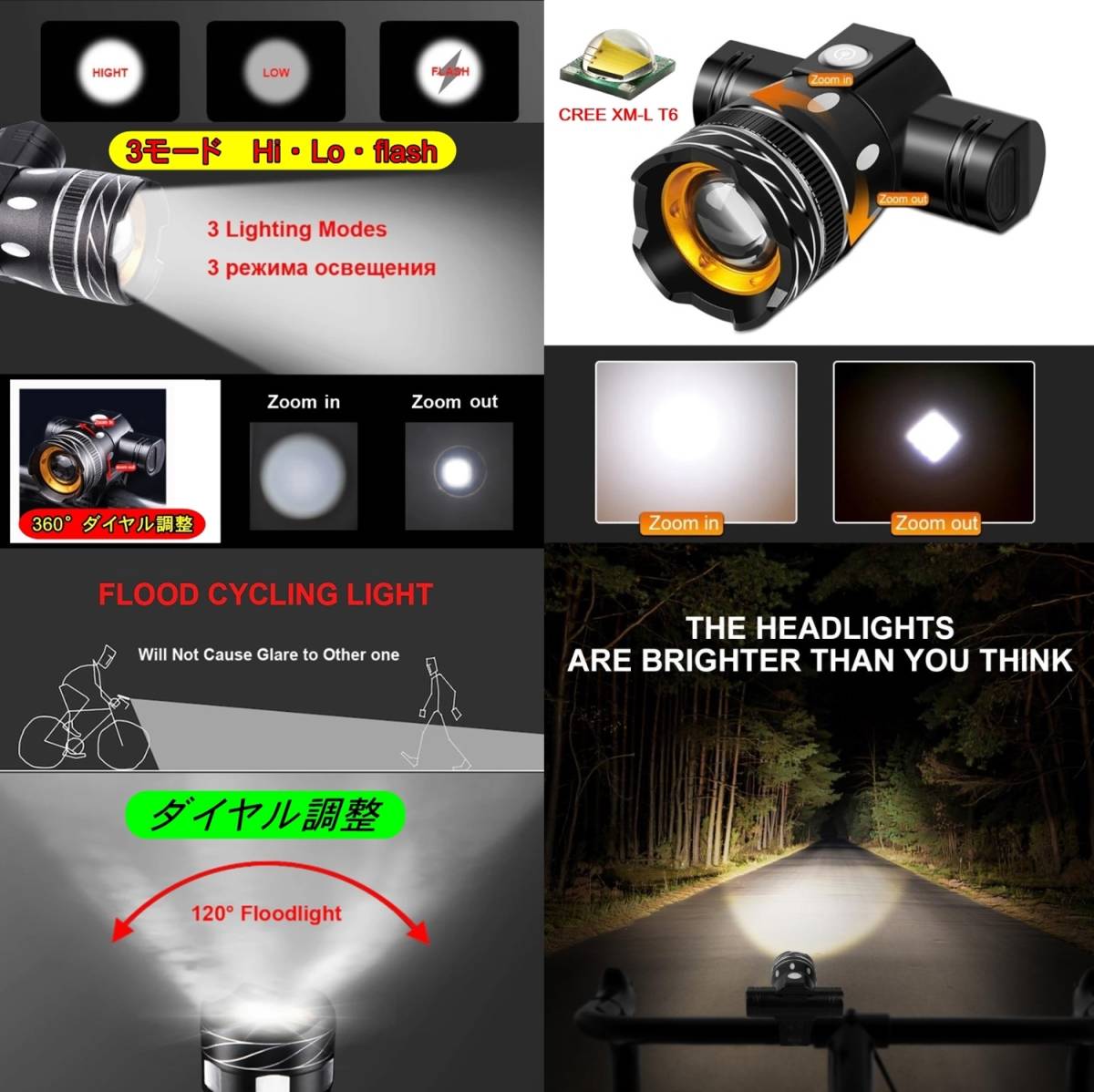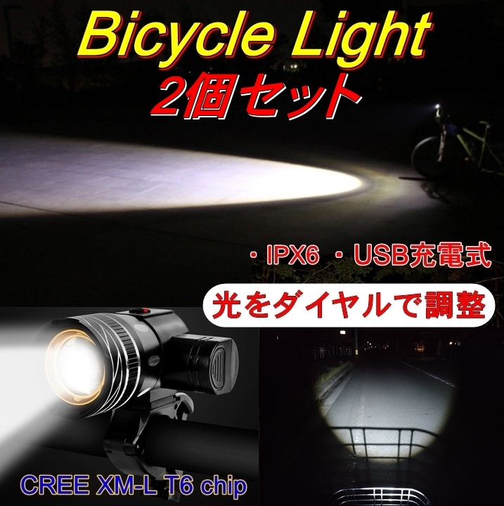 2個セット 通勤・通学 自転車 LEDライト プロジェクター 広角/望遠 充電式ライト