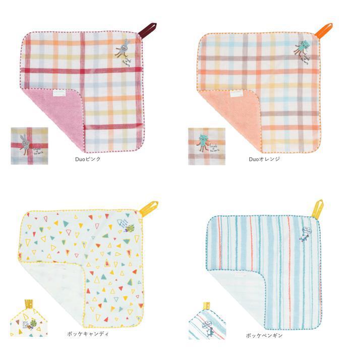 | 商品説明 | ・保育園や幼稚園で大活躍!今治のループ付きタオル。 ・ポッケシリーズは、クレヨンやマジックで描いたような手書き風プリントに、可愛らしい刺繍がアクセントになったシリーズ。 ・デュオシリーズはカラフルなマドラスチェックに個性的な動物の刺繍を施したシリーズ。 ・刺繍はカラーによってデザインが異なるので集めるのも楽しい♪ ・表はガーゼ、裏がパイルタオルで、表のガーゼ部分には、起毛加工を施しているので、ふんわりやさしい肌触りで吸水性も◎ ・どちらのシリーズもネームタグ付き。 ・安心の日本製で、高品質な今治タオル。入園・入学やお祝いのプチギフトにもおすすめ♪ |