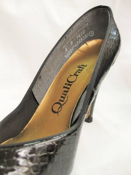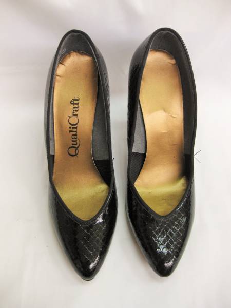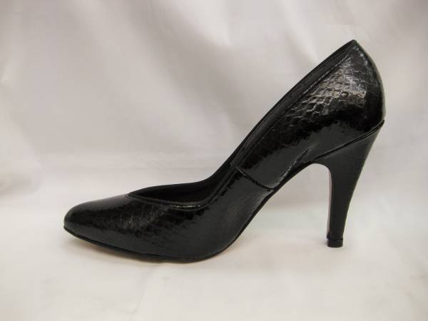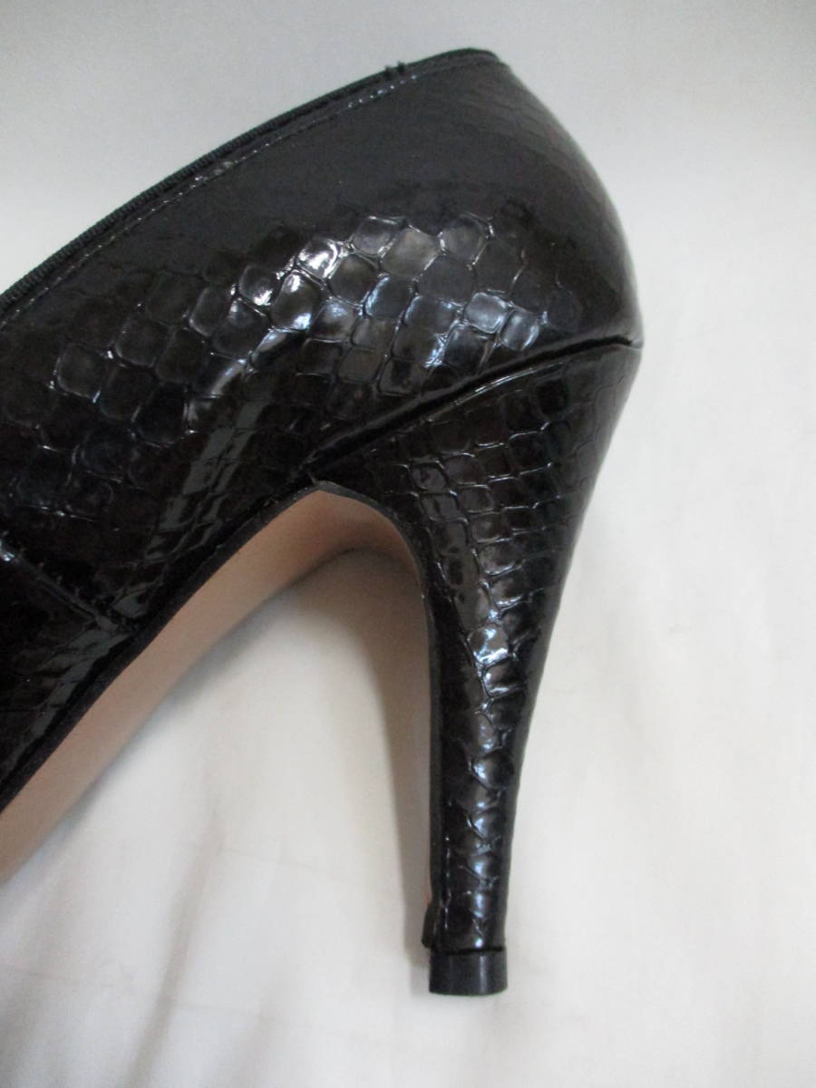 アメリカ購入 エナメル パイソン柄 ハイヒール パンプス 昭和レトロ 黒 23cm相当