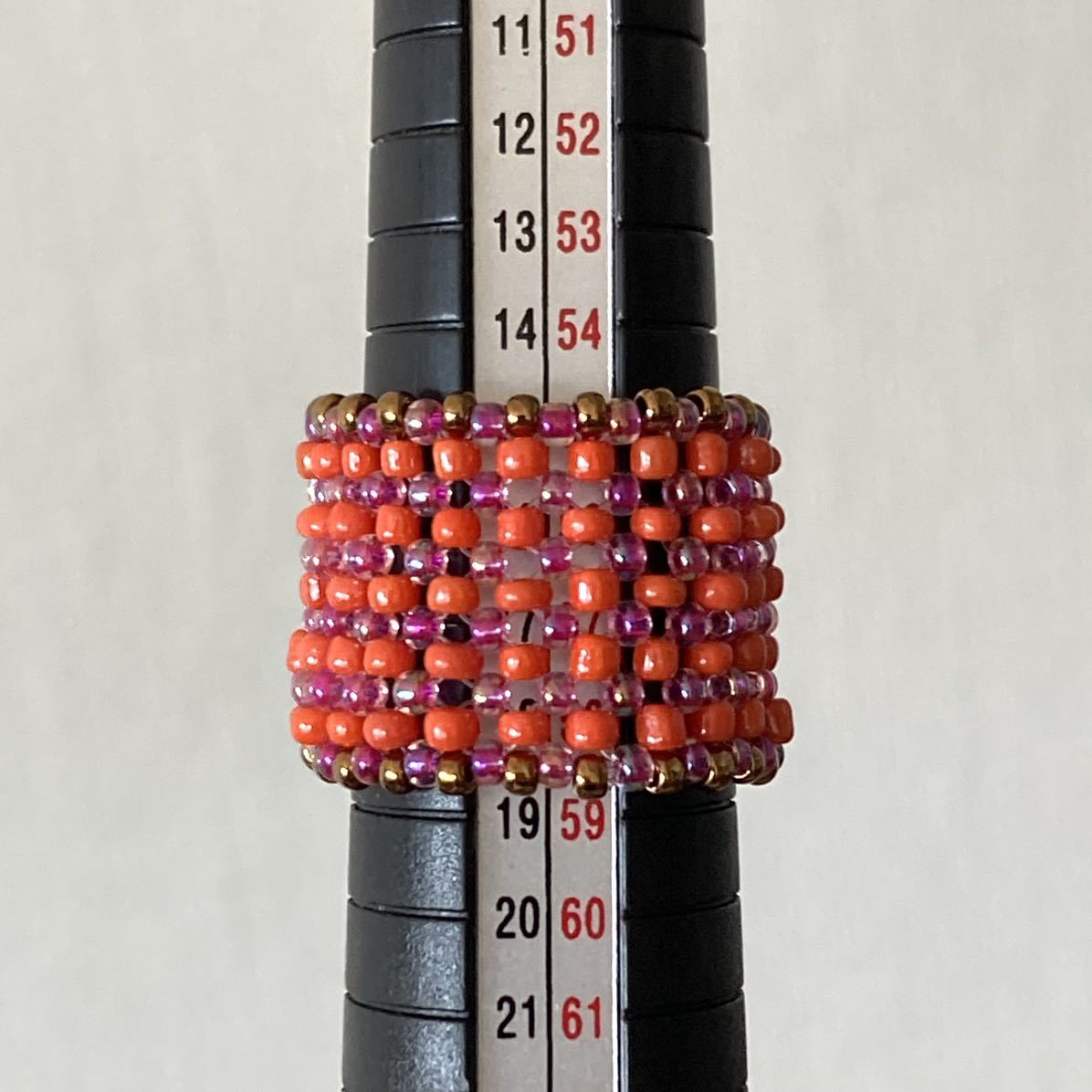 15-17号 ビーズ リング 指輪 ハンドメイド オレンジが可愛いシンプルワイドリング です。