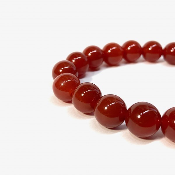 こちらは、赤瑪瑙の10mm玉を使用したパワーストーンブレスレットです。シンプルなデザインは、男女問わずどんなコーディネートとも合わせ易いブレスレットです。サイズは内径約17cmです。(サイズ変更の場合は取引ナビにてご連絡をお願いします。) 数に限りがございますので気になる方はお早めにどうぞ。
