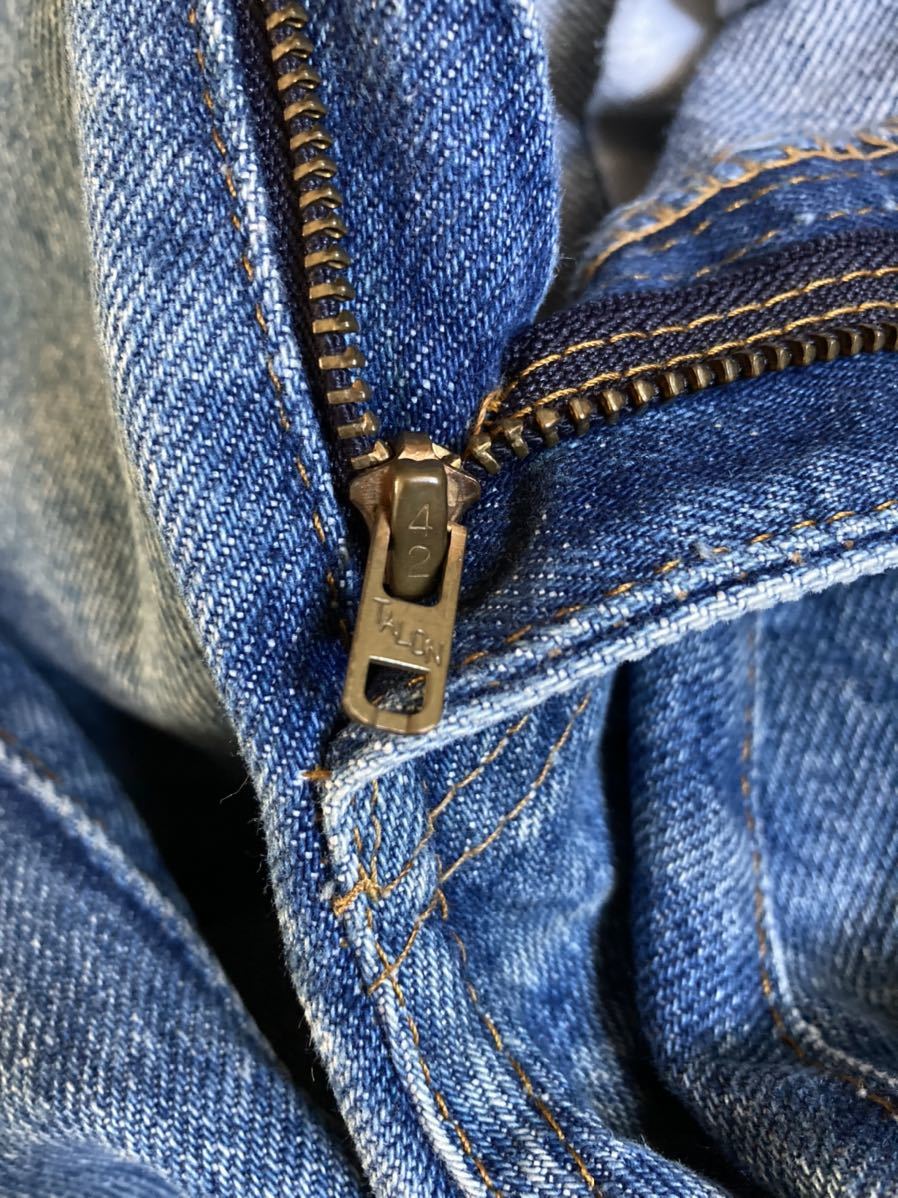 装備:フロントトップボタン裏650刻印、TALON42ジッパー、型番ハイフンなし&ケアタグ表記紙パッチ、両面スモールe赤タブ、両サイドアウトシームオレンジ糸脇割り、バックポケット上両角紺色バータック、コインポケット裏シングルステッチ、内股シングルステッチ、両裾オレンジ糸オリジナルチェーンステッチ、他は画像を参照ください。