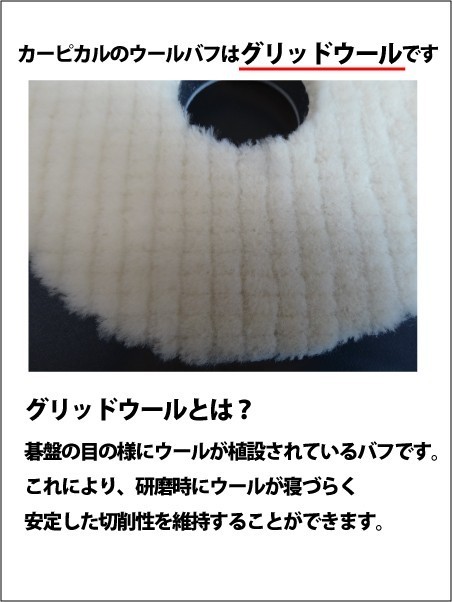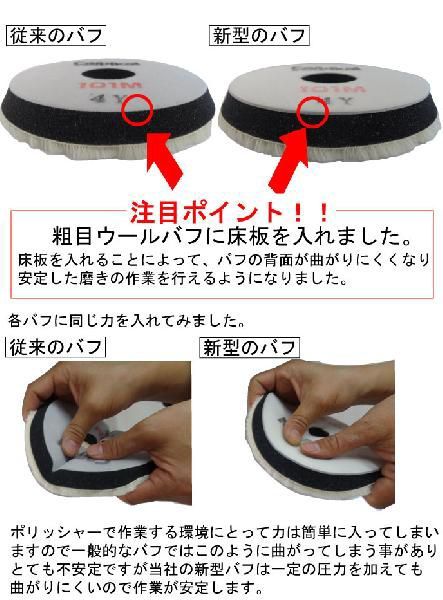 ウール・ウレタン兼用バフクリーナー バフ表面に固着したコンパウンド等を削ぎ落とす事が出来ます。 詳しくは商品画像をクリックしてください。 | |