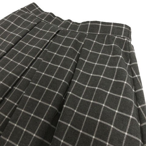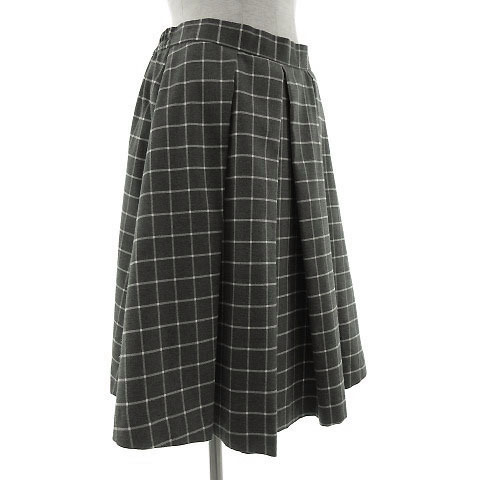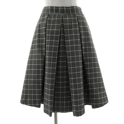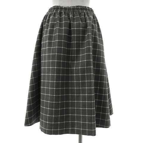インデックス INDEX スカート ミモレ丈 フレアー ストレッチ 格子柄 グレー ホワイト 白 M レディース