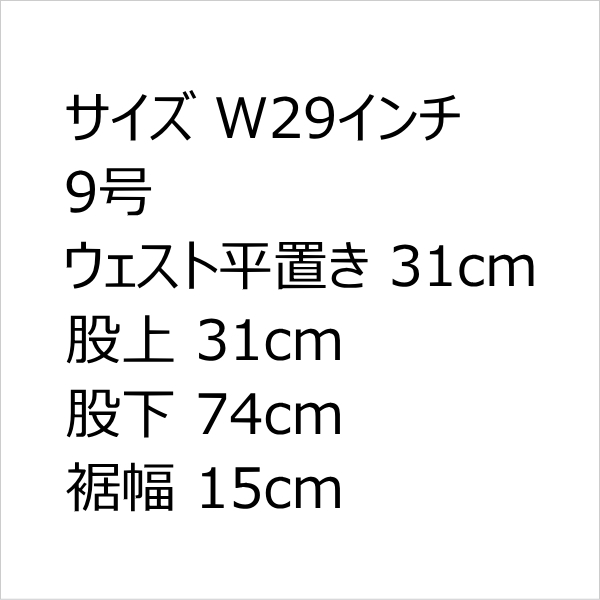 ・サイズW29インチ/9号/ウェスト平置き31cm/股上31cm/股下74cm/裾幅15cm