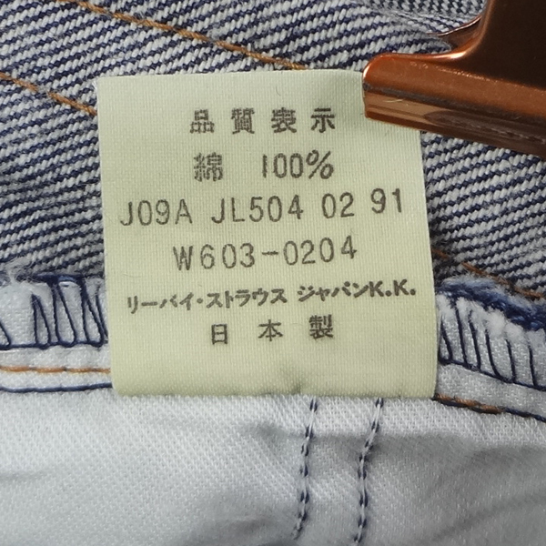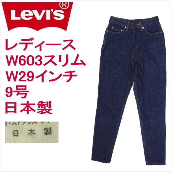 リーバイスのレディース日本製W603スリムハイウェストジーンズ、実店舗の店頭展示品を1度洗濯しただけの未使用品、綿100%、1991年2月製造