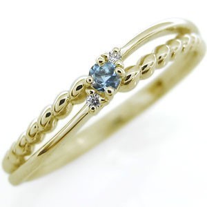 3月誕生石アクアマリンサンタマリアを一粒使用した、10金製シンプルリング(指輪)です。