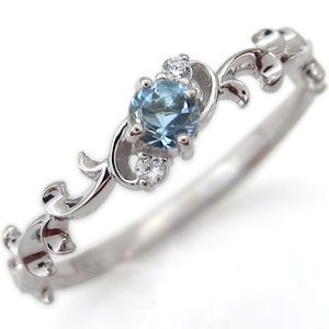 ■石名:主石 アクアマリンサンタマリア(約 3.0mm/天然石使用)脇石 ダイヤモンド(2石合計で約 0.02ct/天然石使用)