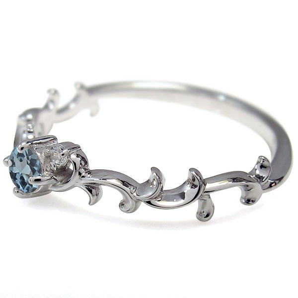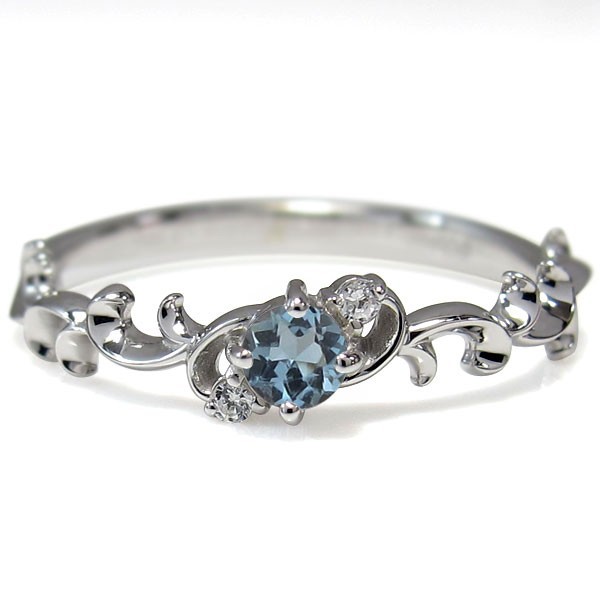 3月誕生石アクアマリンサンタマリアを一粒使用した、アラベスク(唐草)デザインのプラチナ製リング(指輪)です。