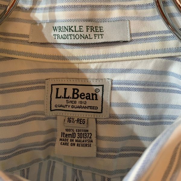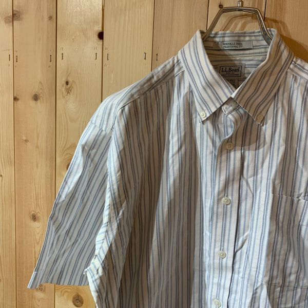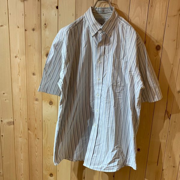 [KWT2937] L.L.Bean 半袖ボタンダウンシャツ メンズ ブルーストライプ柄 16 1/2 ポス