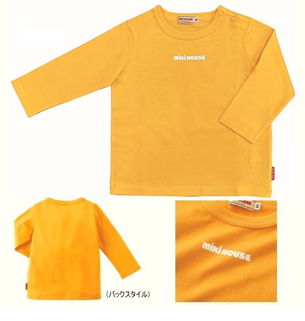 即決です!【ミキハウス】新品未使用♪100cm 95cm~105cm mikihouseロゴプリント シンプル長袖Tシャツ 子供服 キッズ 男女兼用 カラー:黄