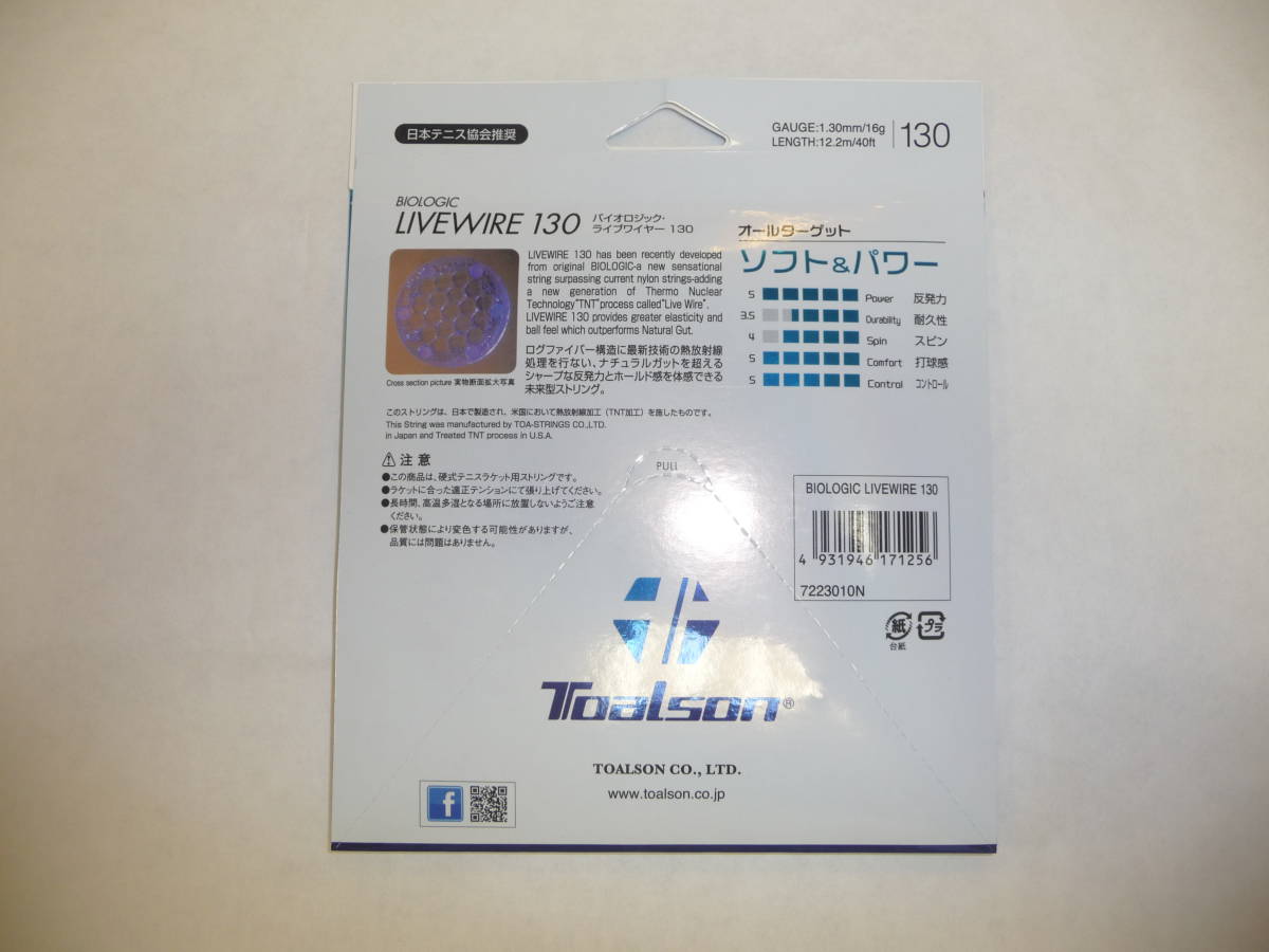 T2.25%off! TOALSON 硬式テニスガット バイオロジック・ライブワイヤー 130 ナチュラル