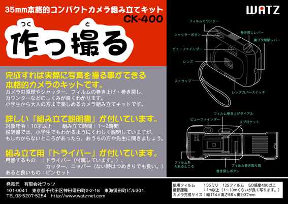 自分で組み立てる35ミリ本格的コンパクトカメラの組み立てキットです。