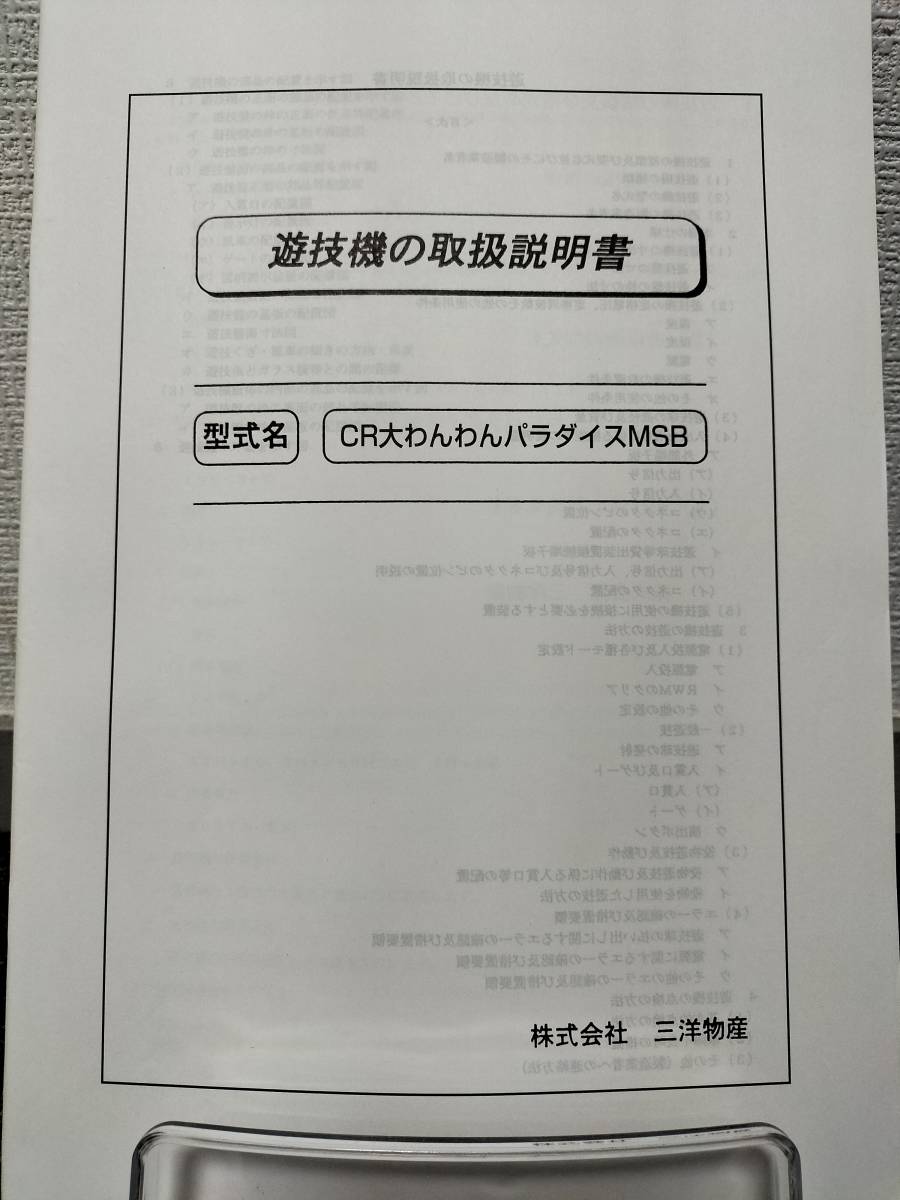 【非売品】三洋 CR大わんわんパラダイスMSB 取扱説明書
