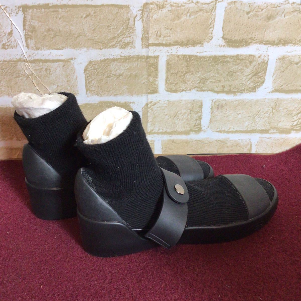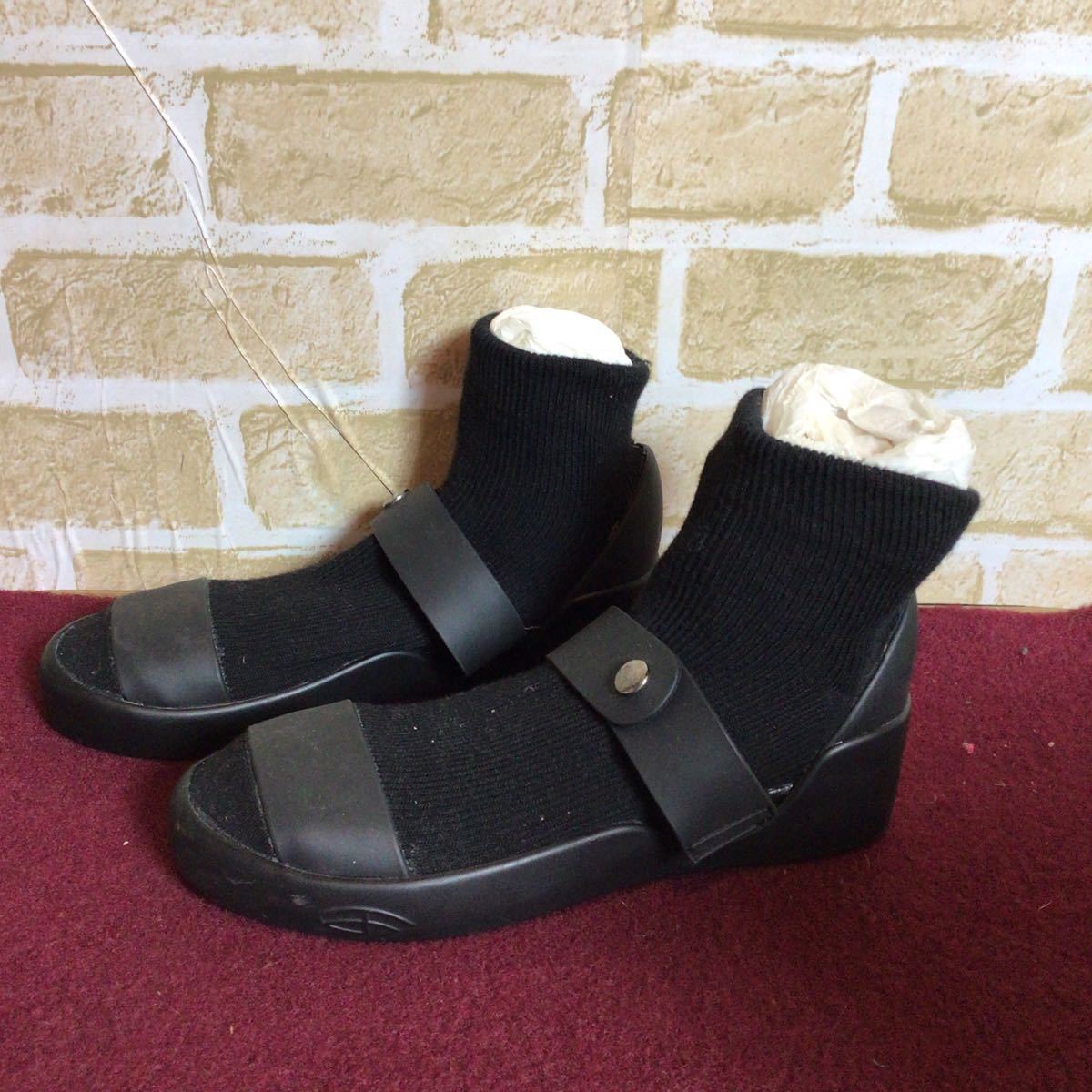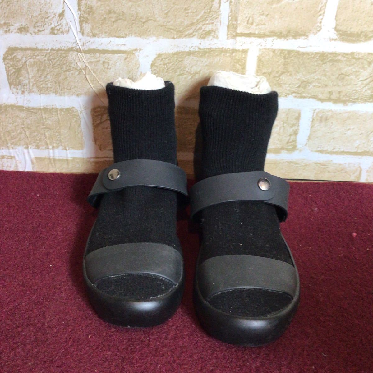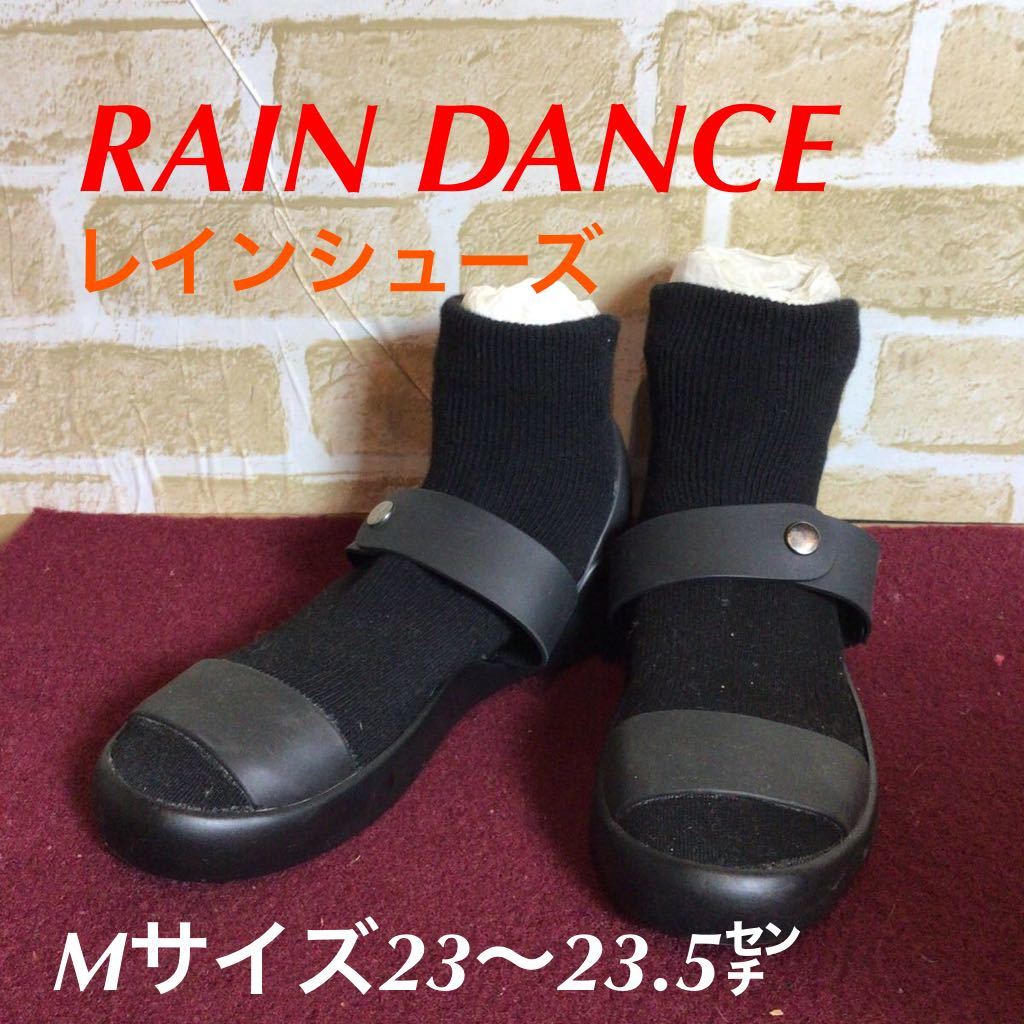 【売り切り!送料無料!】A-181 RAIN DANCE! レイン シューズ ニット レディース 黒 雨靴 防水 サンダル風 ムレにくい 2WAY! Mサイズ! 中古