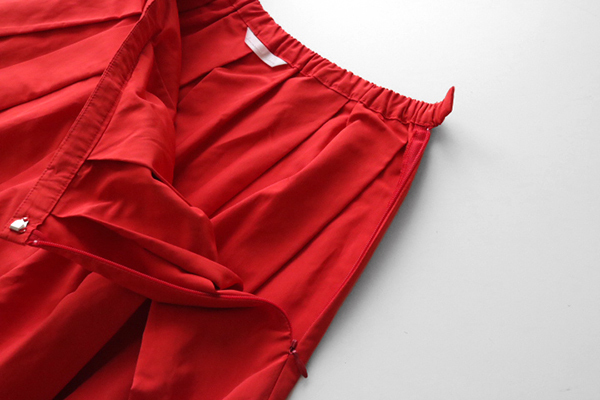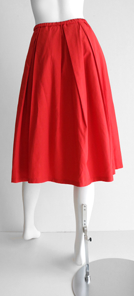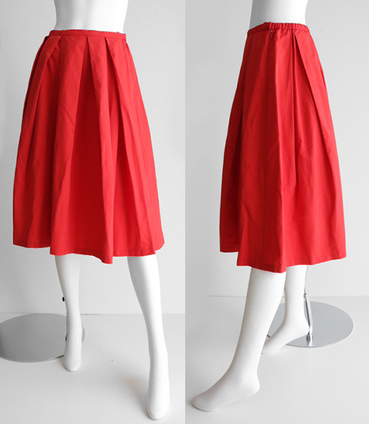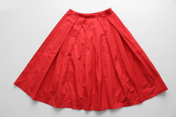 ビビッドカラーのプリーツスカート。