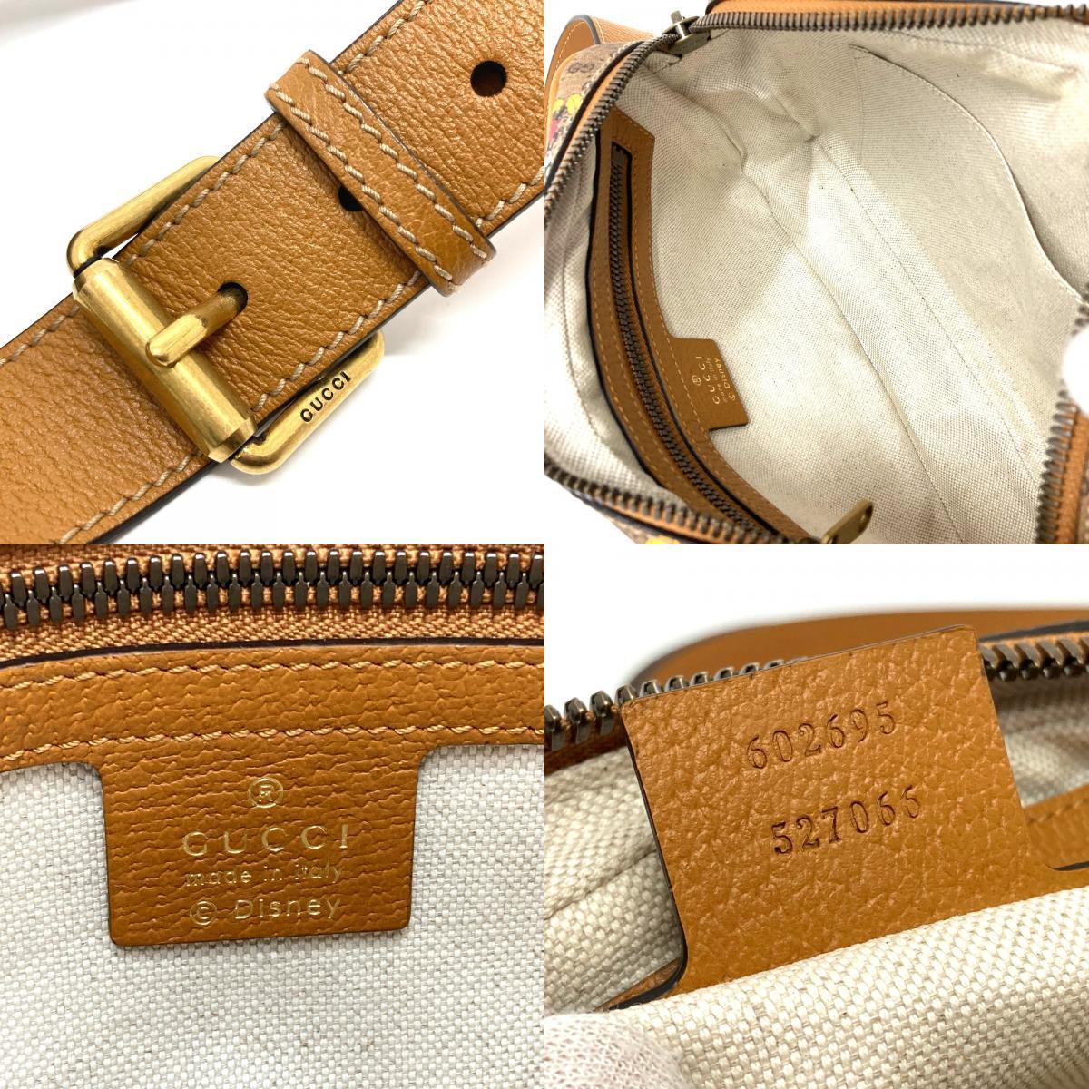 商品説明遊び心あふれるミッキーマウスのプリントをあしらった、GGキャンバスのボディバッグです。ヴィンテージ感漂うライトブラウンのレザートリムを施しています。