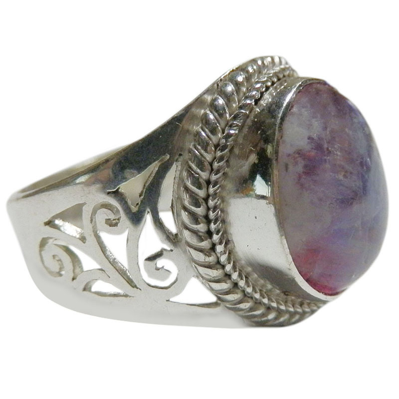 ■☆アジアン雑貨 ネパール銀職人 ピンクムーンストーン・リング(PNR-36)