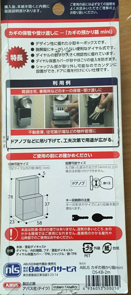 ■画像通りの、日本ロックサービス アバス(ABUS) カギの預かり箱 mini DS-KB-2mです。