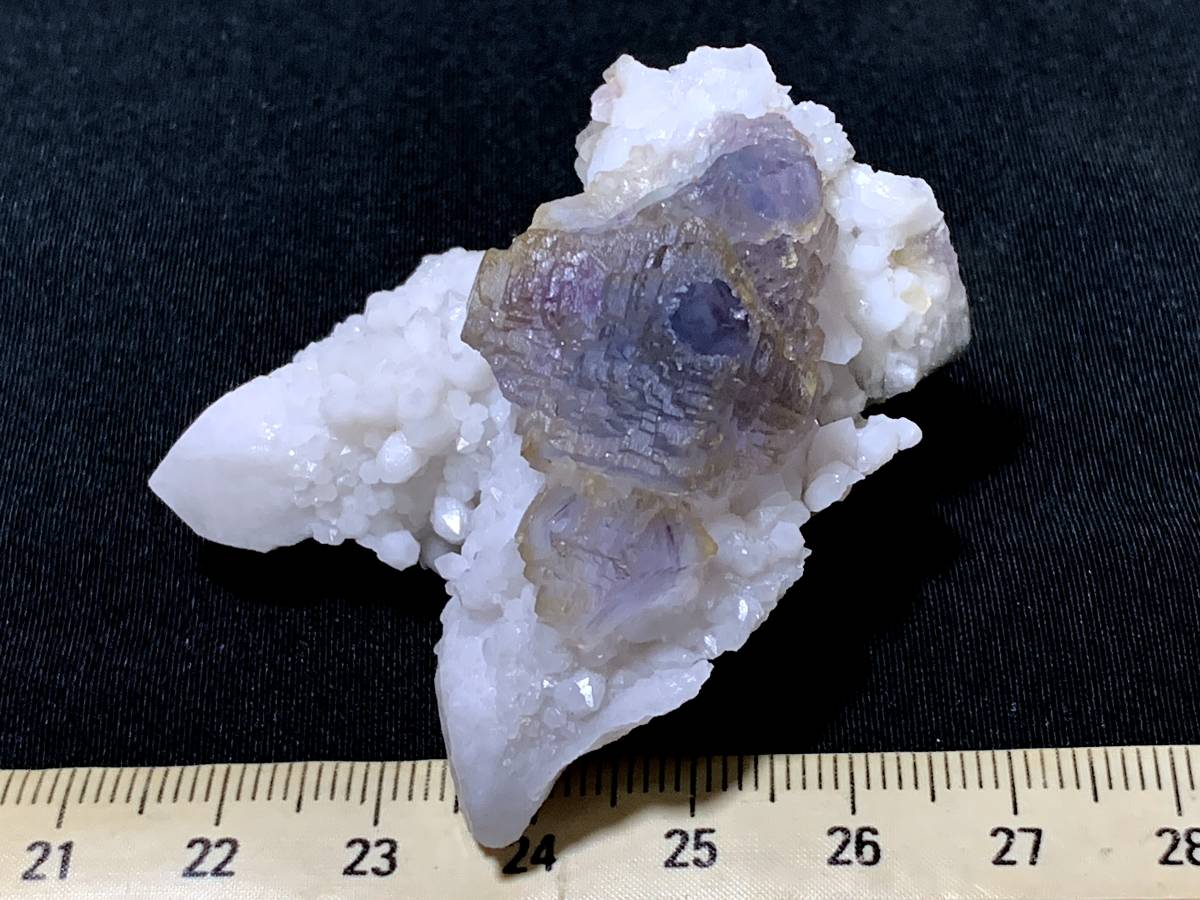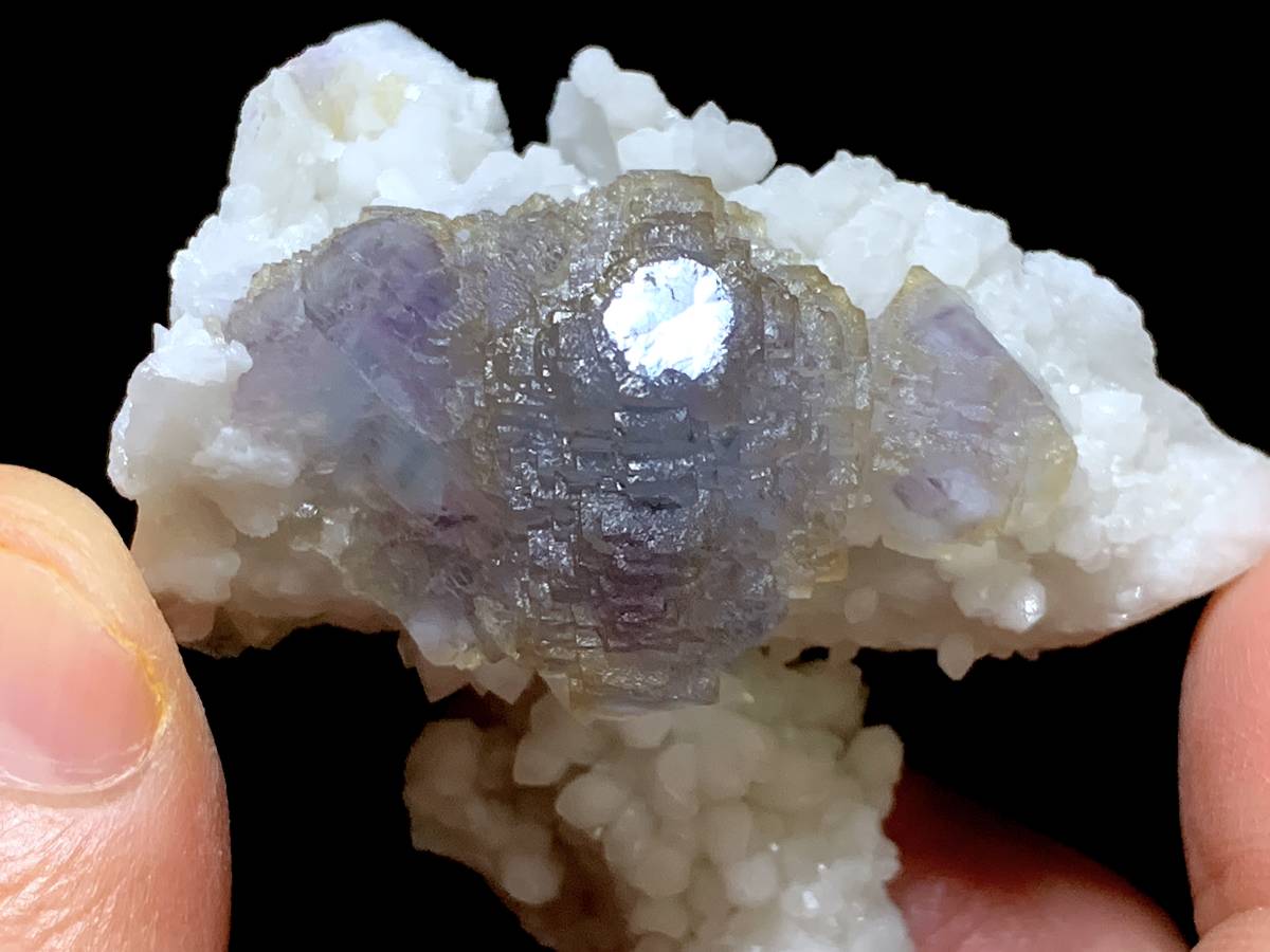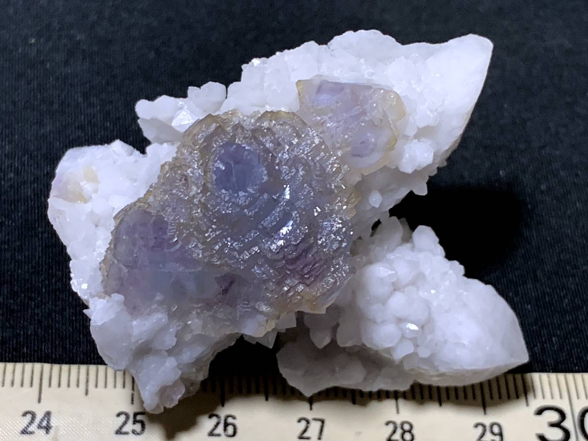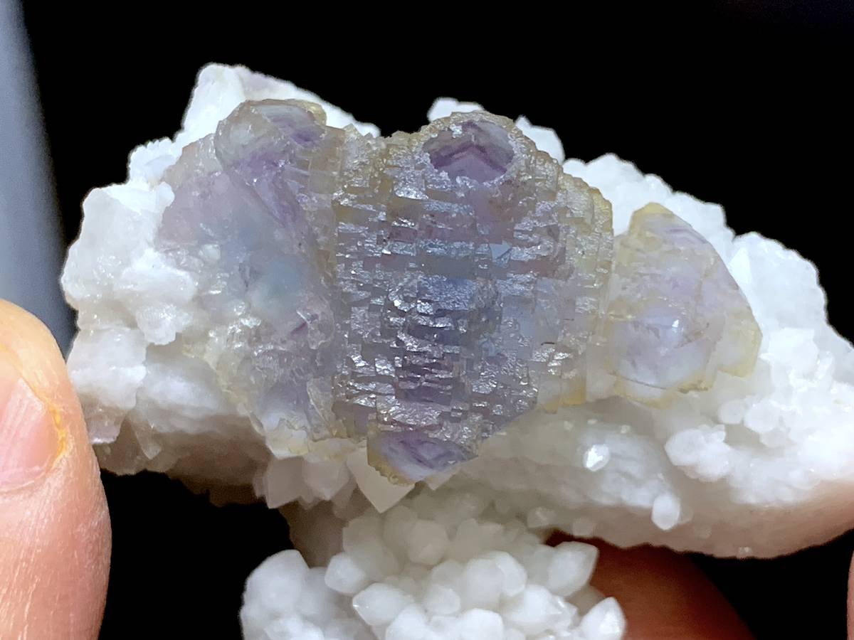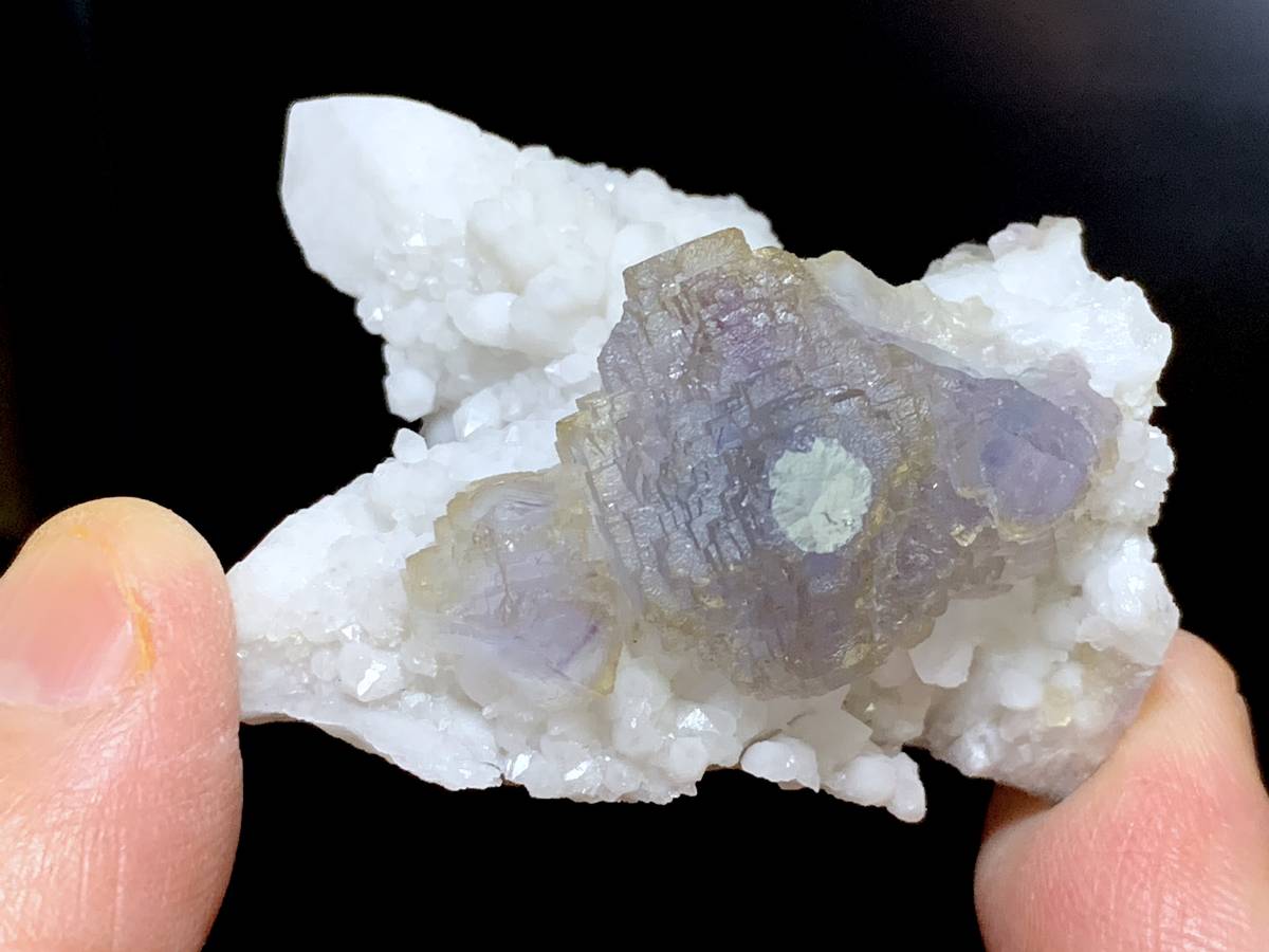 内蒙古産のミルキークオーツ上の階段状蛍石・58g(中国産鉱物標本)