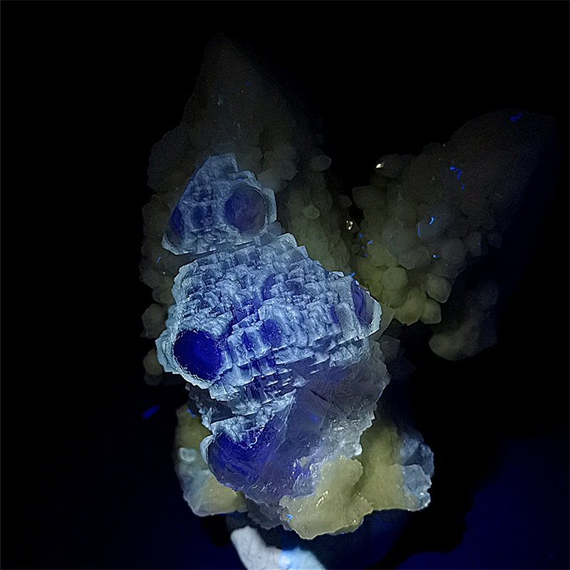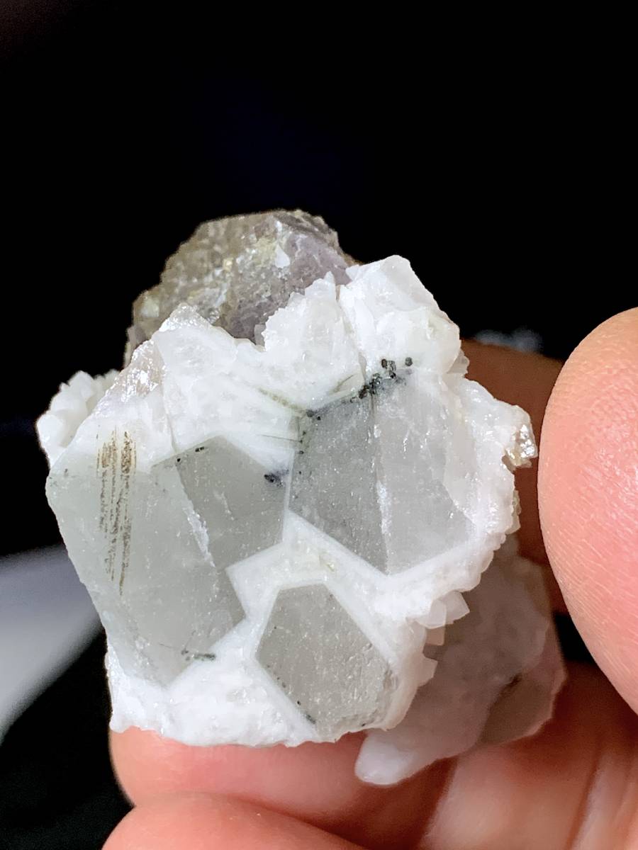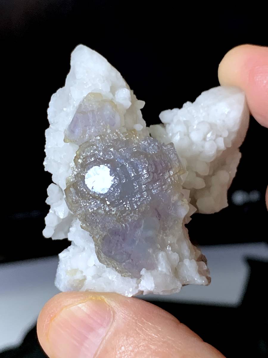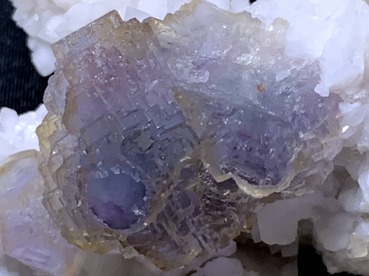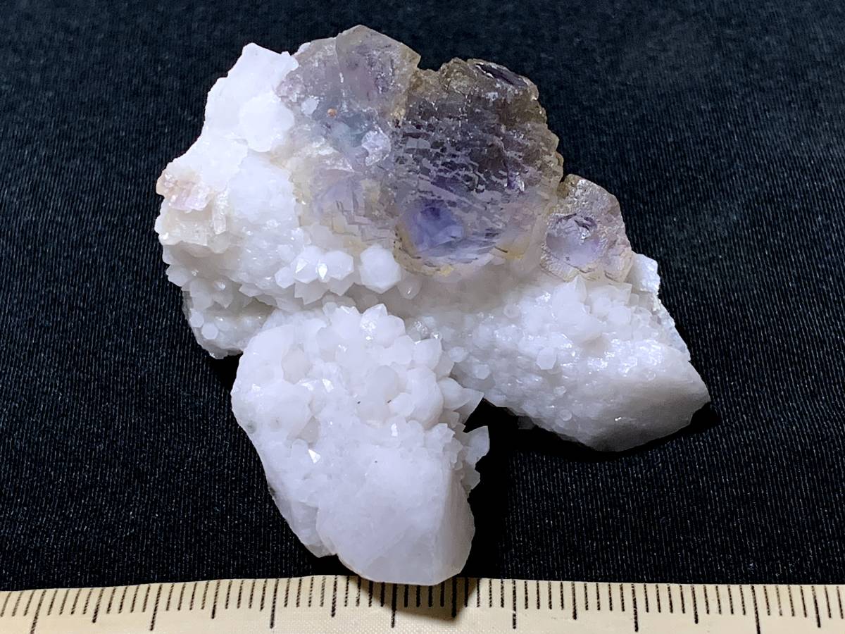 内蒙古産のミルキークオーツ上の階段状蛍石・58g(中国産鉱物標本)