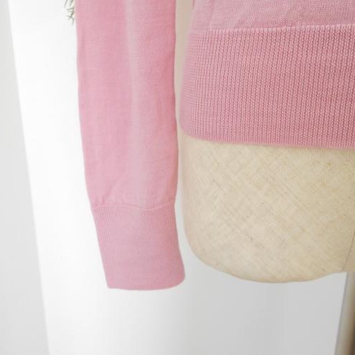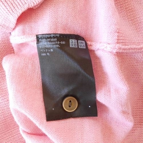 ユニクロ UNIQLO レディース 薄地の長袖ニットカーディガンです。 ウール100%で暖かい一品です。お色は綺麗なピンクです。薄地なので春先やコートの下などにも着て頂けそうです。