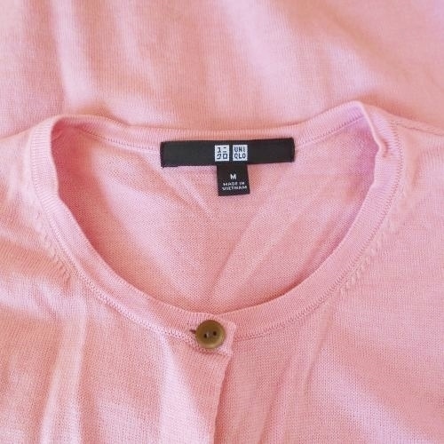 ユニクロ UNIQLO レディース M 長袖 ニット カーディガン ウール100% 毛 薄地 ピンク トップス