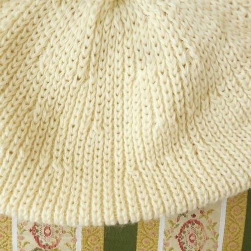 無印良品 良品計画 レディースのニット帽です。お色は生成り系で薄地の帽子です。色んな季節に可愛くどうぞ。