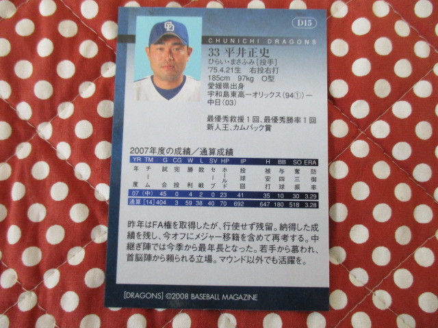 ★BBM 2008 中日ドラゴンズ★〔D15・平井正史〕ベースボールカード トレカ♪