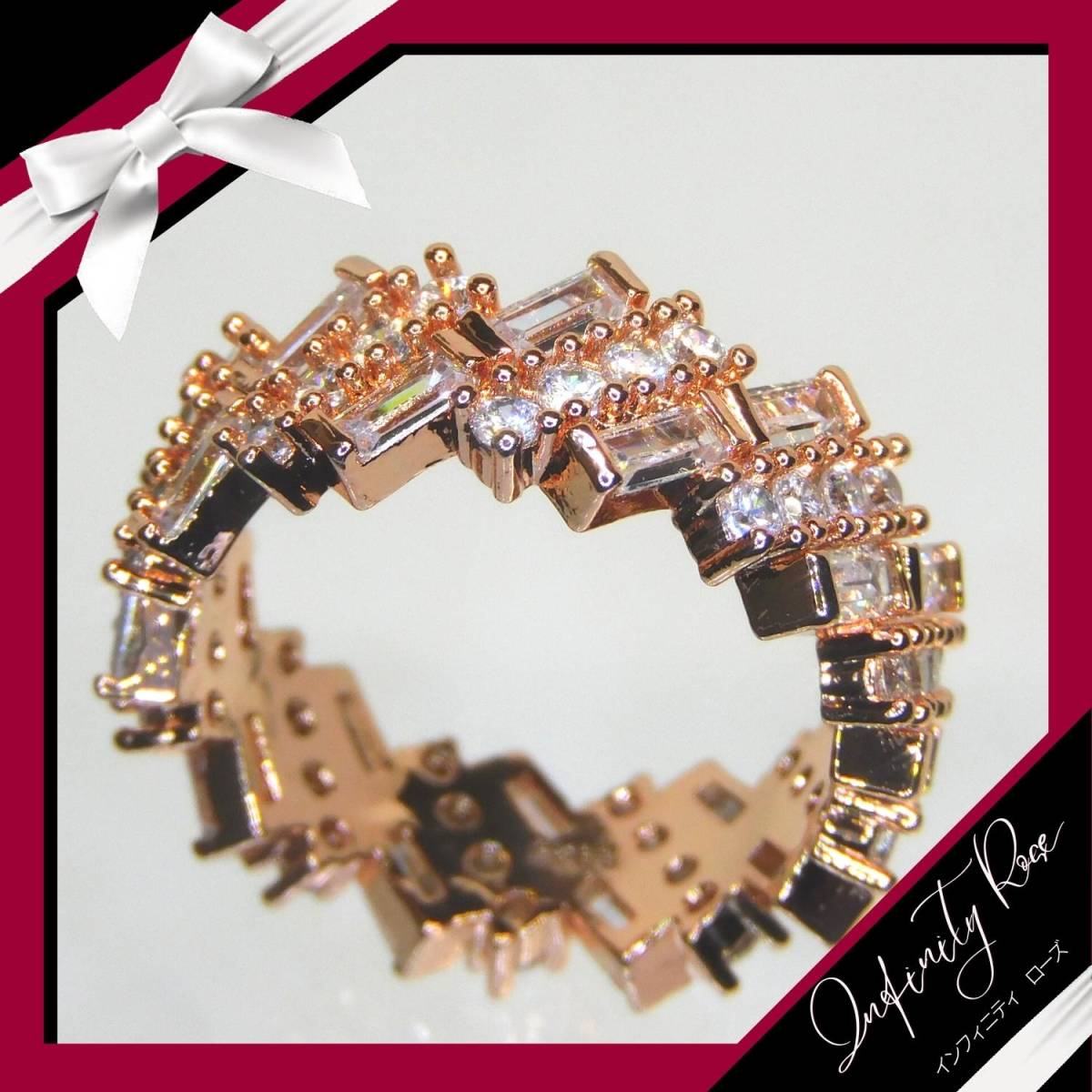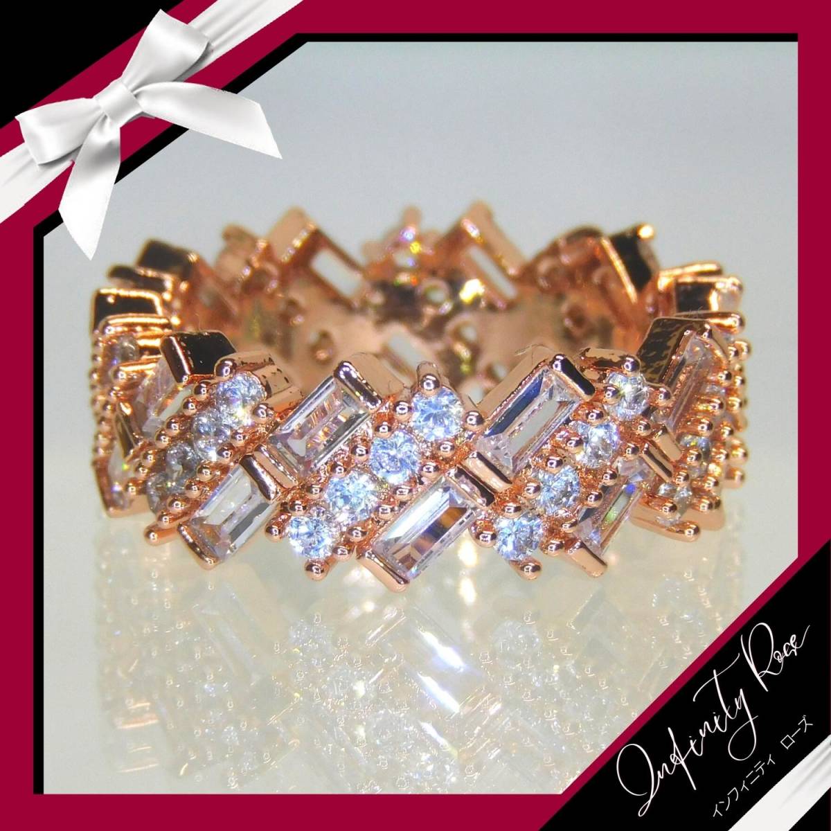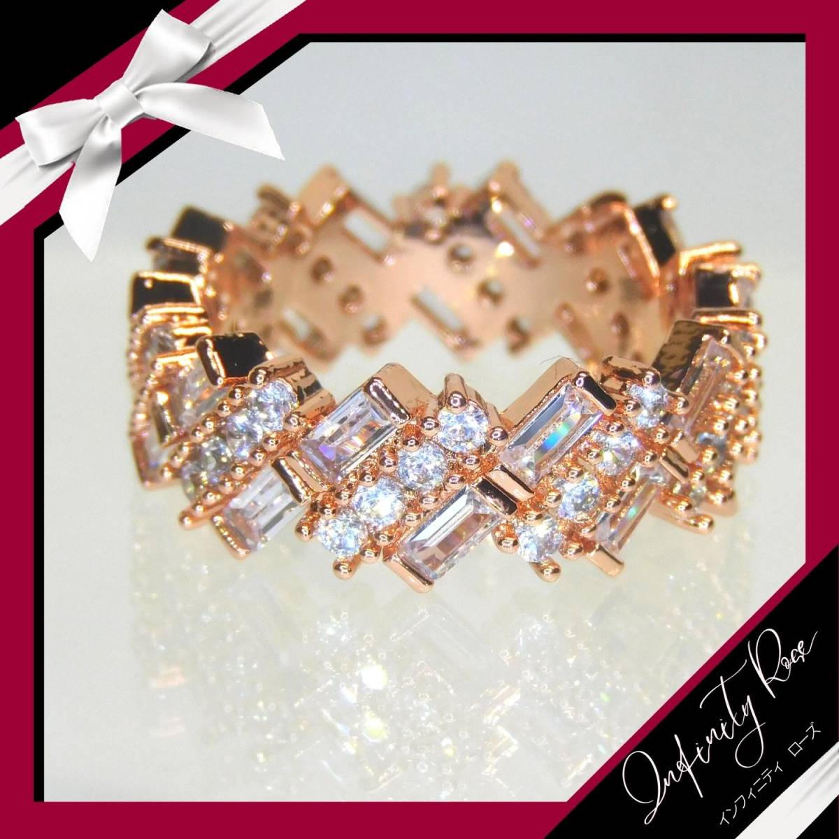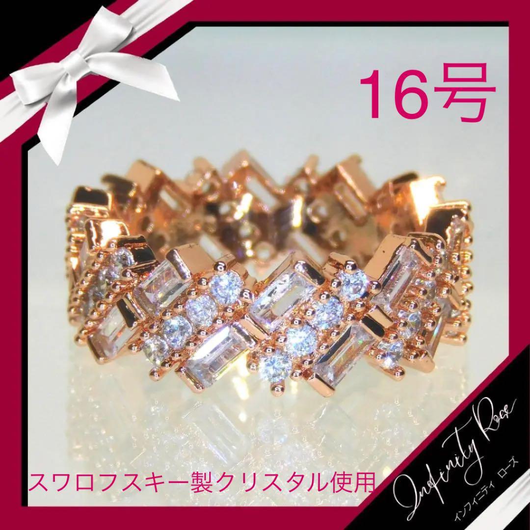 (1072)16号 ピンクゴールド 全周クリスタル太リング スワロフスキー製クリスタル使用