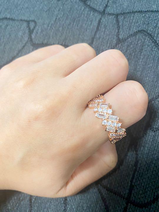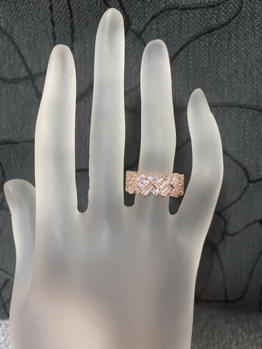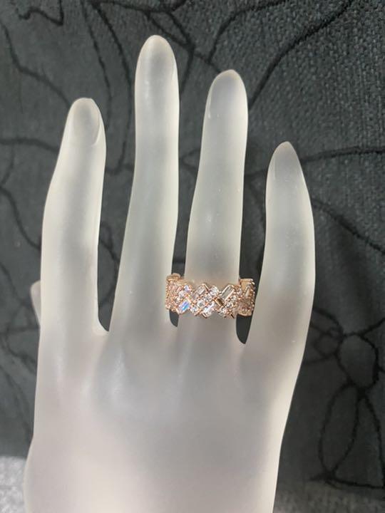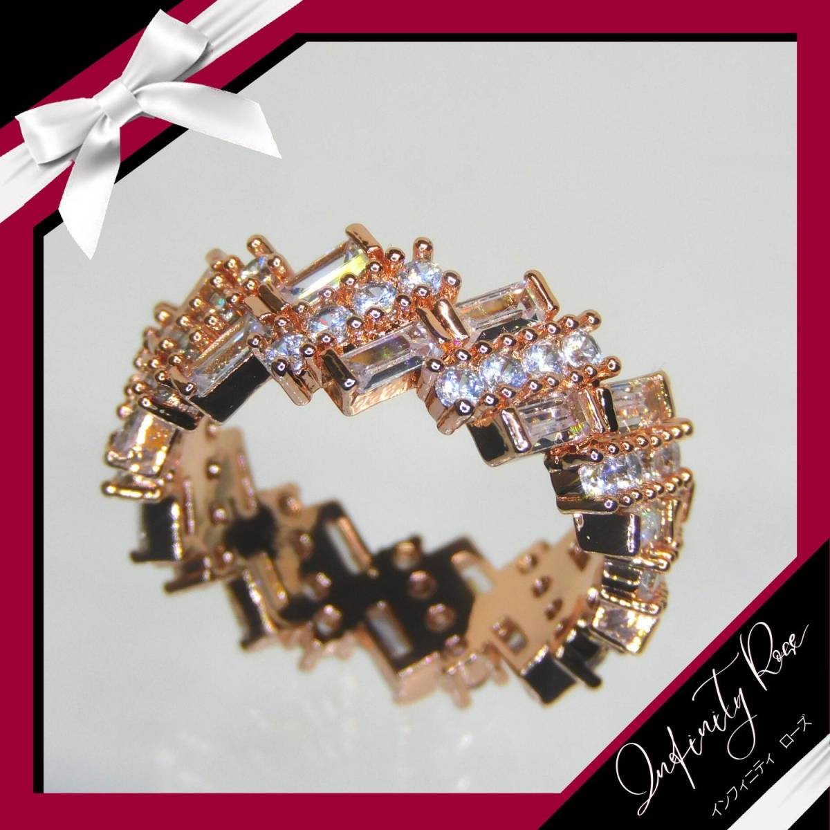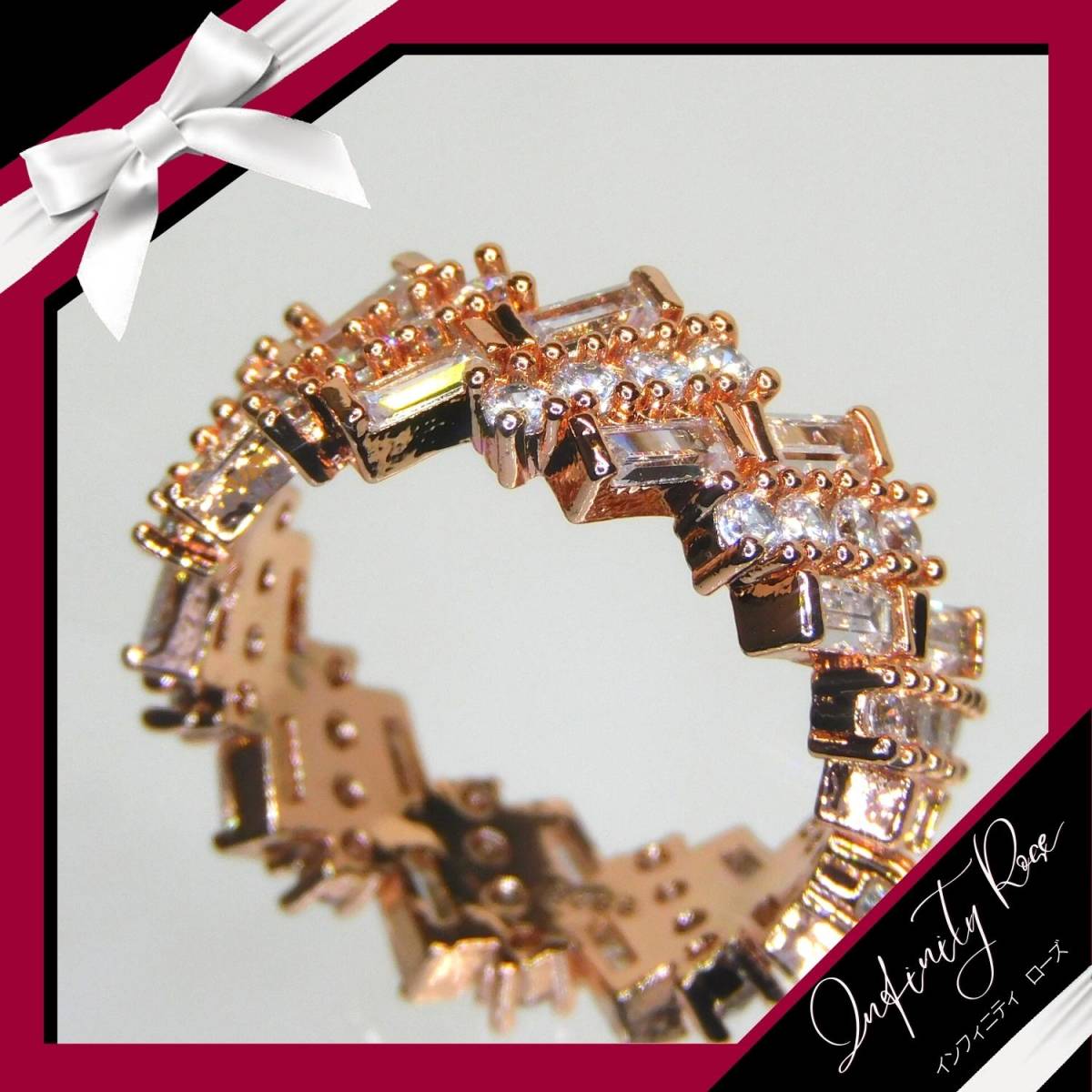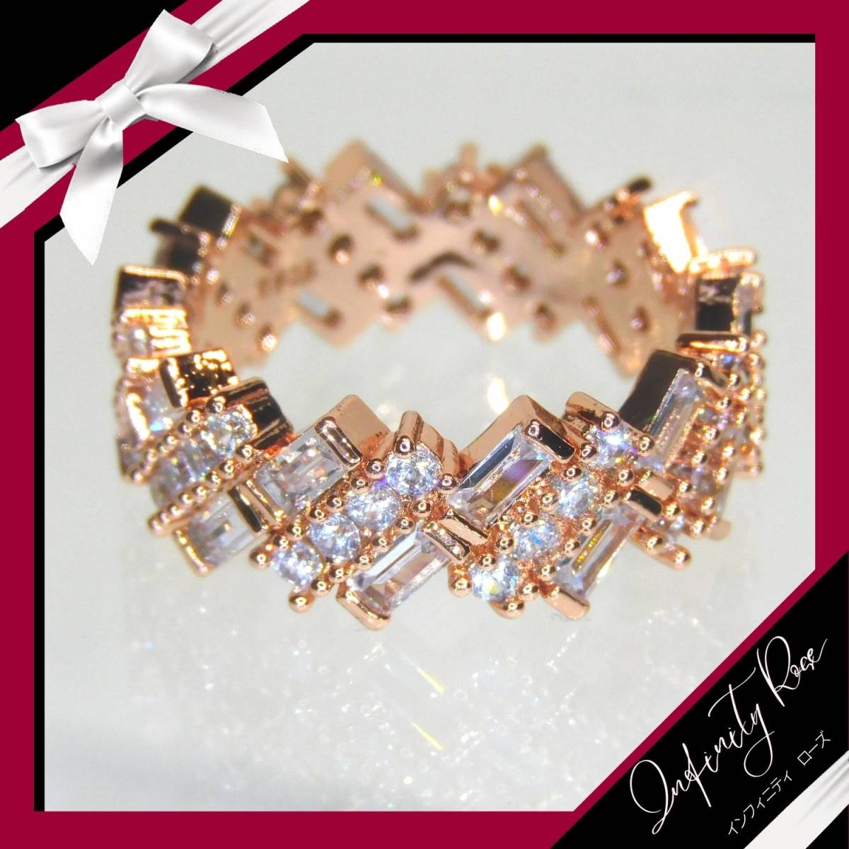 (1072)16号 ピンクゴールド 全周クリスタル太リング スワロフスキー製クリスタル使用